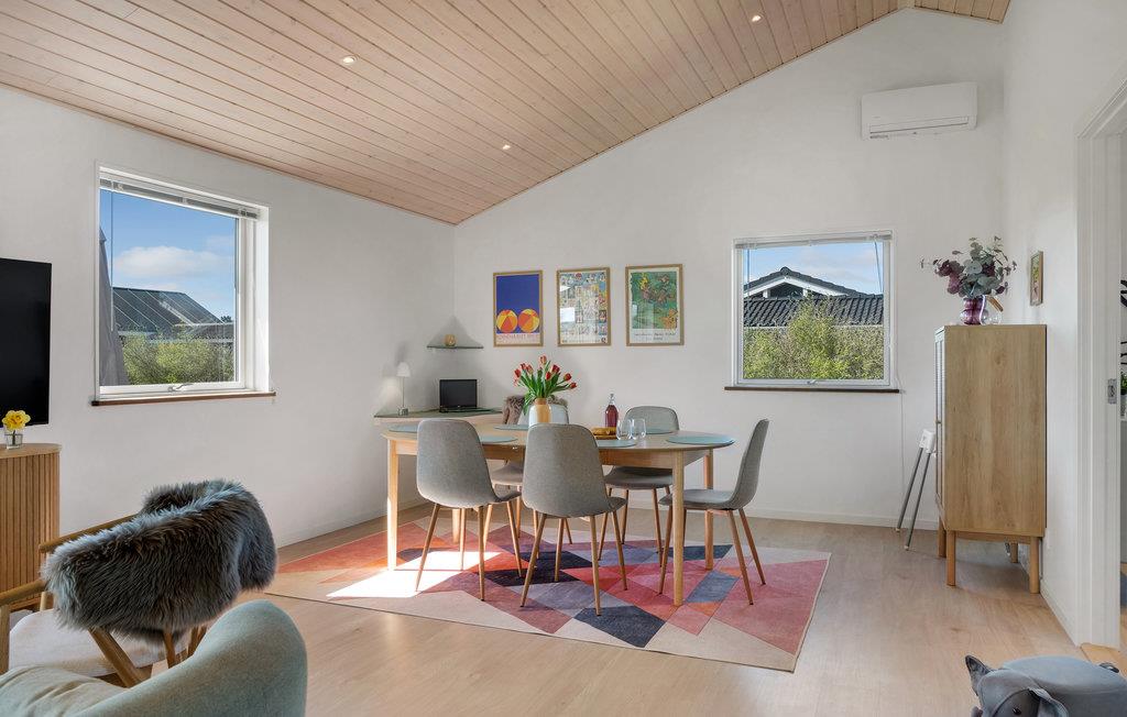 Det børnevenlige hus ligger i gåafstand til stranden. Sommerhuset danner den perfekte ramme om en aktiv ferie for hele familien. I de lyse værelser med loft til kip, moderne indretning, markante træelementer og skønne fællesområder vil I uden tvivl føle jer godt tilpas. Nyd sommerstemningen og glæd jer til hyggelige aftener i de indbydende sofaer.
