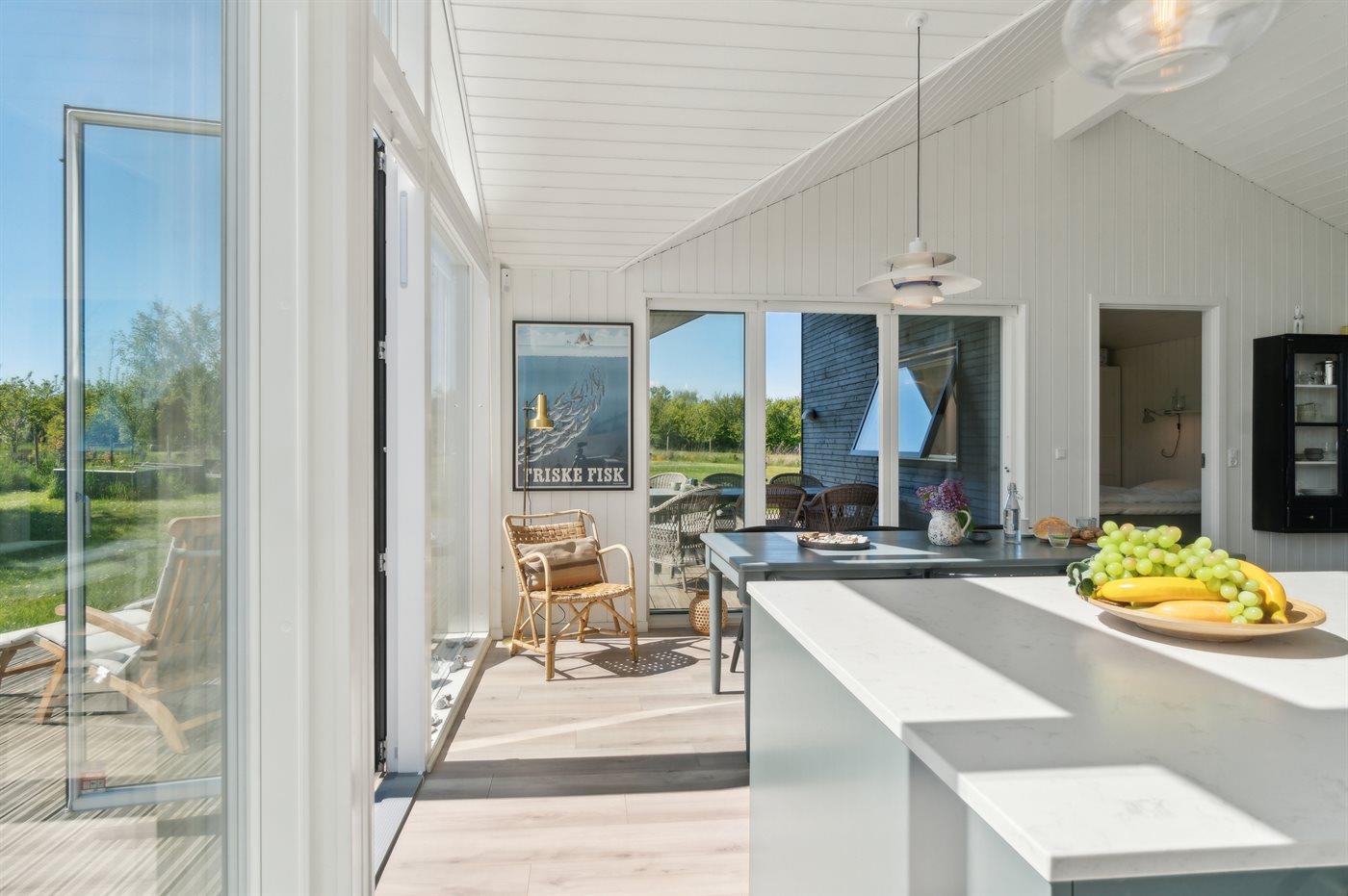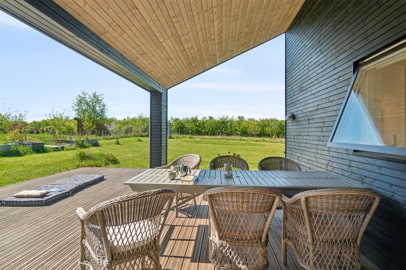Moderne sommerhus i Havnsø fra 2021, kun 300 m fra børnevenlig strand med stor terrasse og elbiloplader.