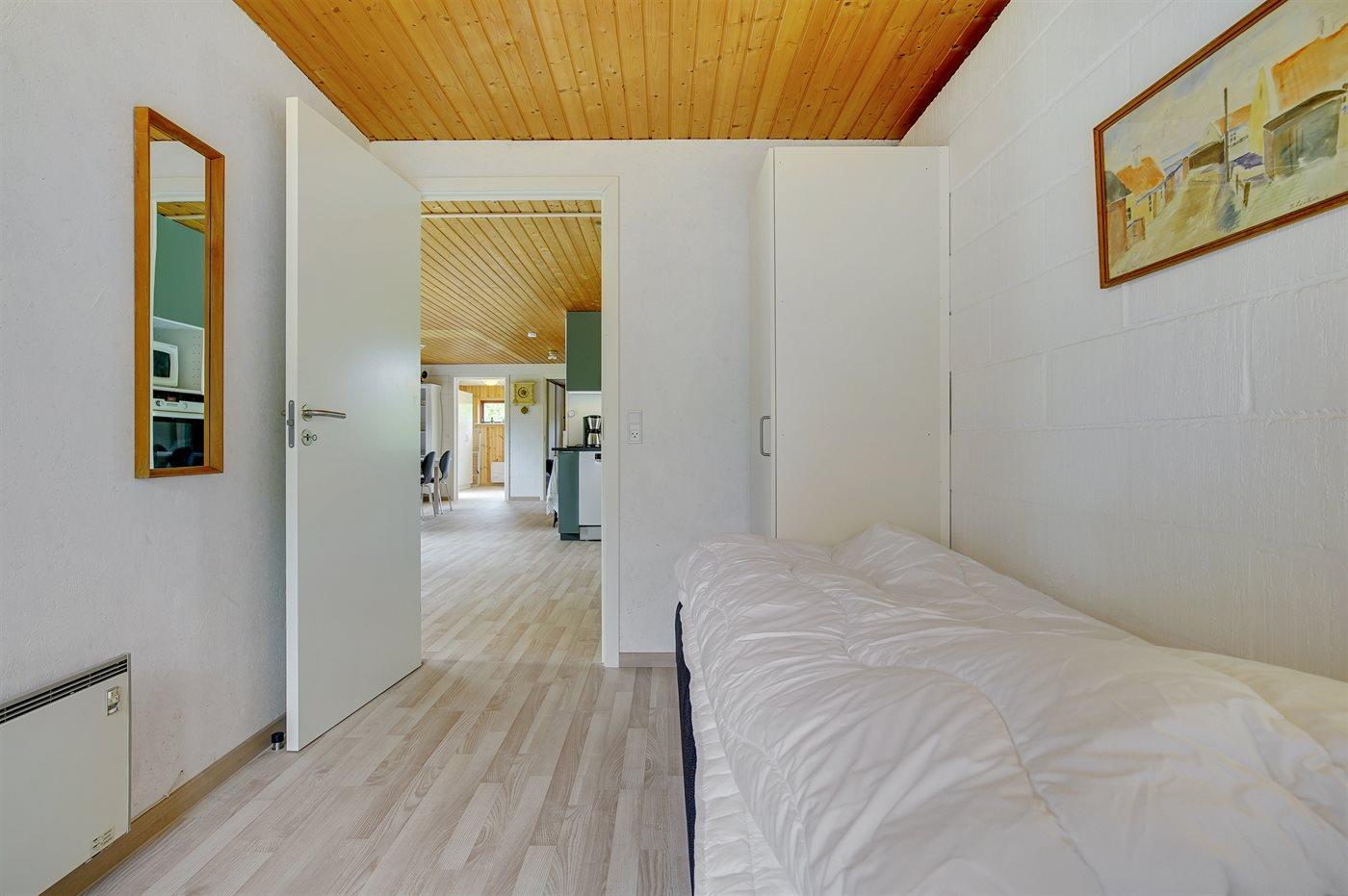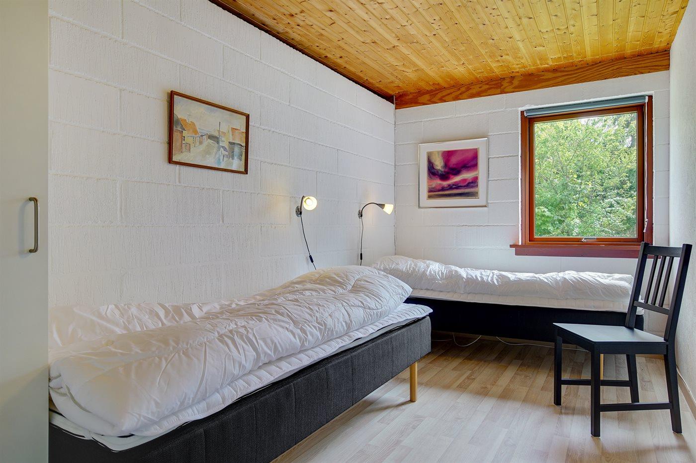 Der er i alt 3 soveværelser. Sovepladserne fordeler sig på: 2 sovepladser i dobbeltseng. 2 sovepladser i enkeltsenge. 2 sovepladser i sovesofa (dobbelt).