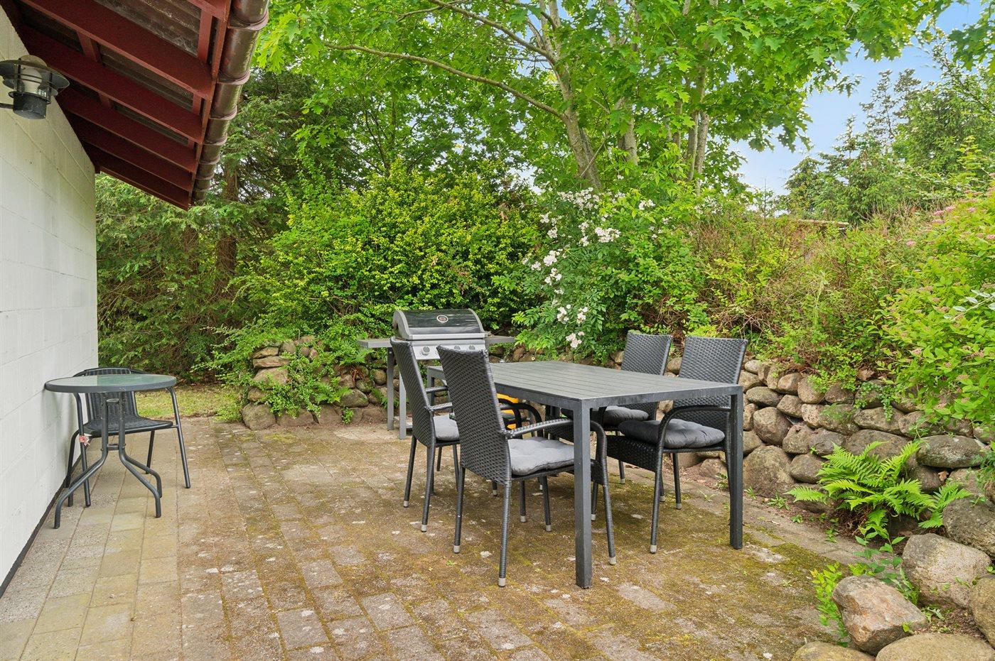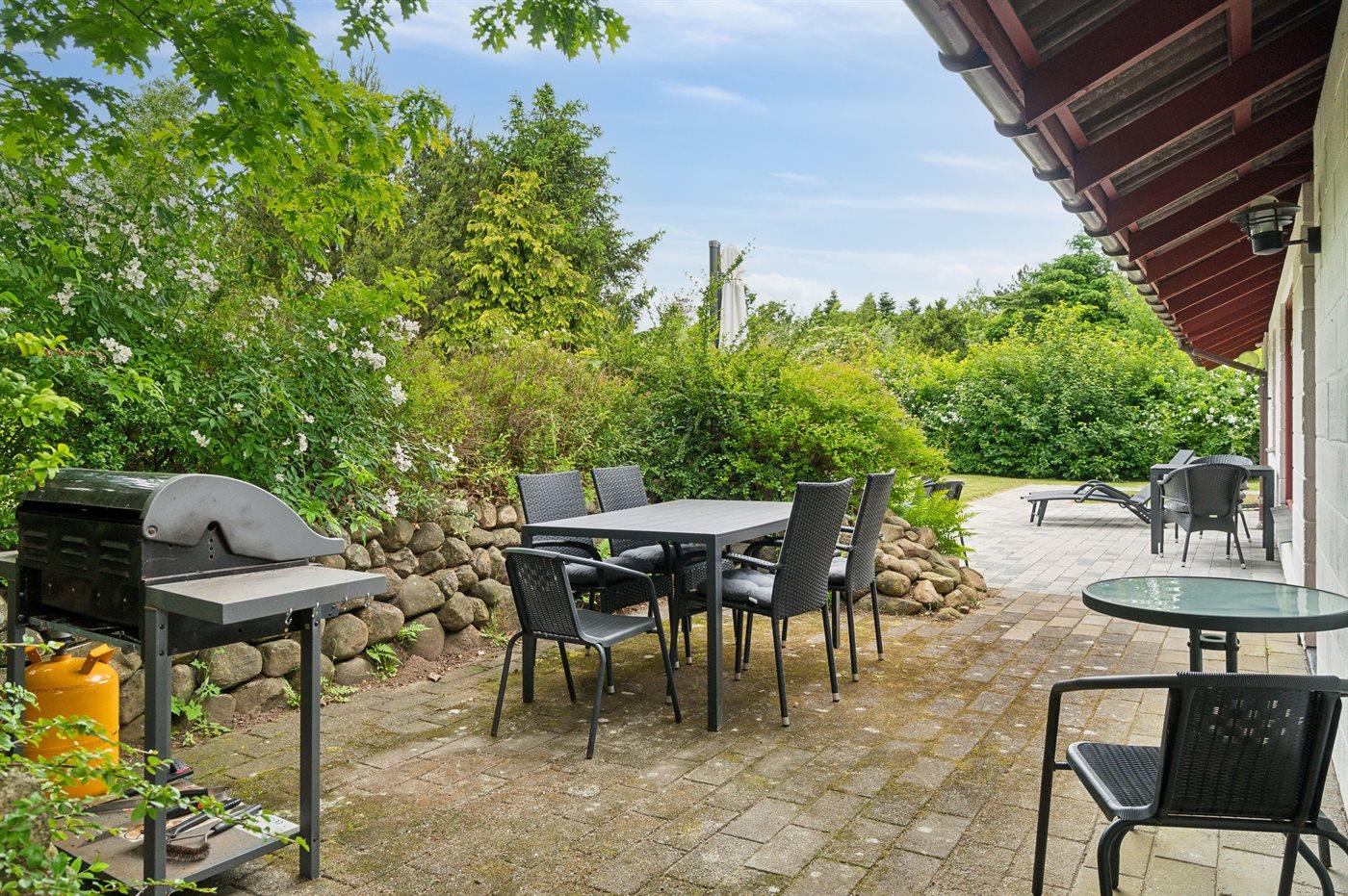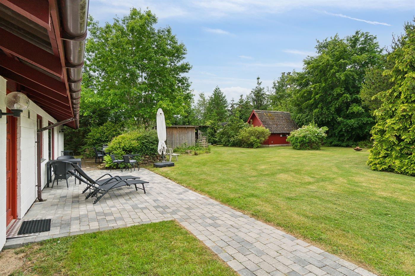 Ferieboligen er beliggende på en 1230 m² stor naturgrund. Grunden er indhegnet. Der er 1100 m til havet. Der er en sø i en afstand af 8000 m. Nærmeste forretning er beliggende i en afstand af 3500 m. Til ferieboligen hører 30 m² terrasseareal. Der er redskabsrum. Grill til rådighed. Parkering ved ferieboligen.