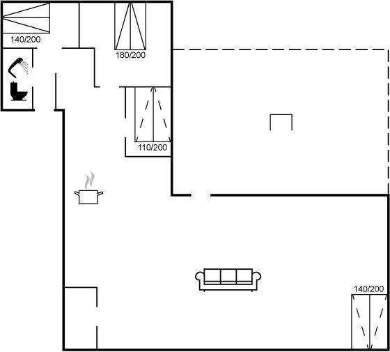 Der er i alt 3 soveværelser. Sovepladserne fordeler sig på: 4 sovepladser i dobbeltsenge. 1 soveplads i sovesofa (enkelt). 2 sovepladser i sovesofa (dobbelt). 2 af disse sovepladser befinder sig i stuen. Derudover er der 1 stk. barneseng.