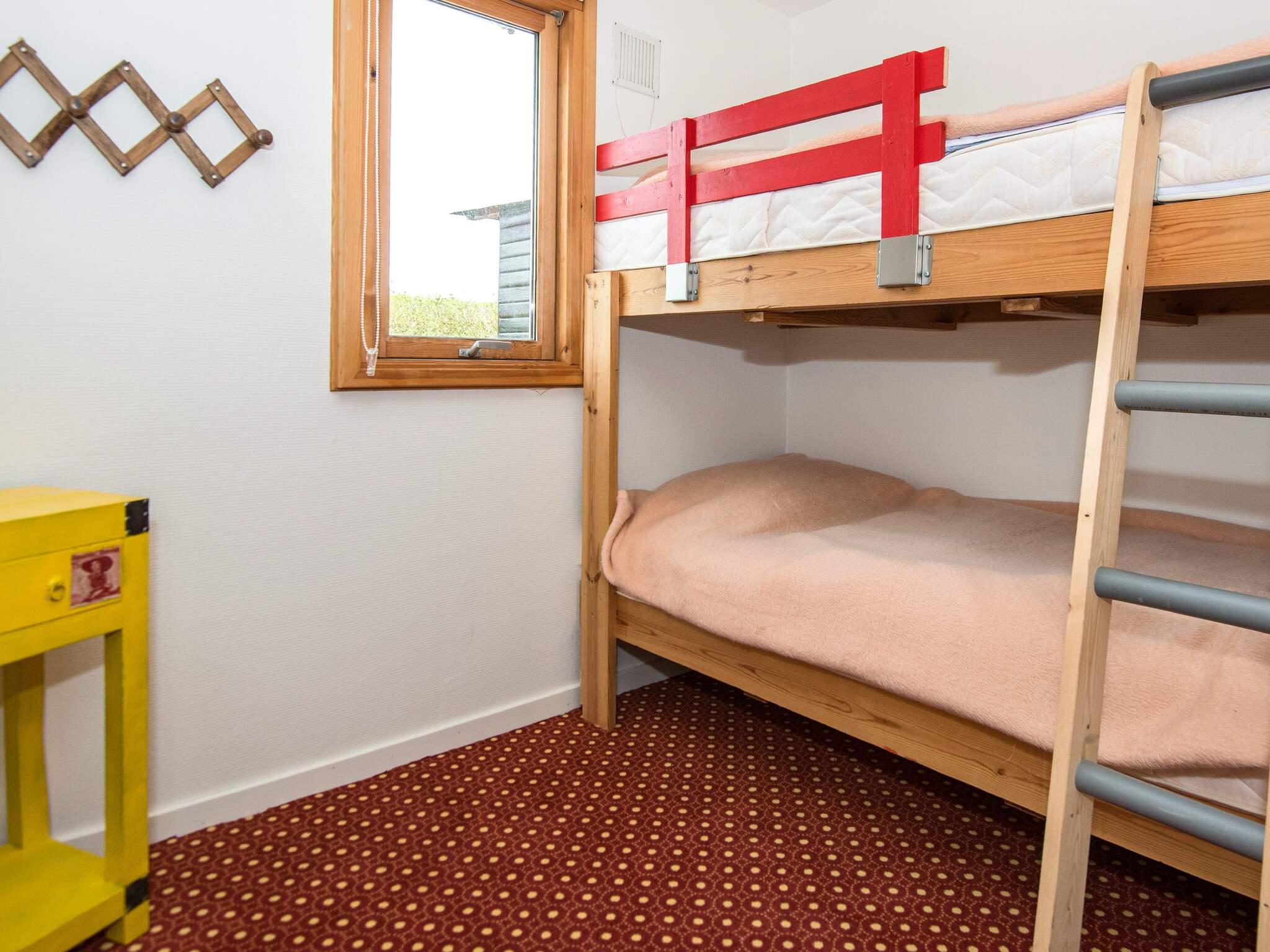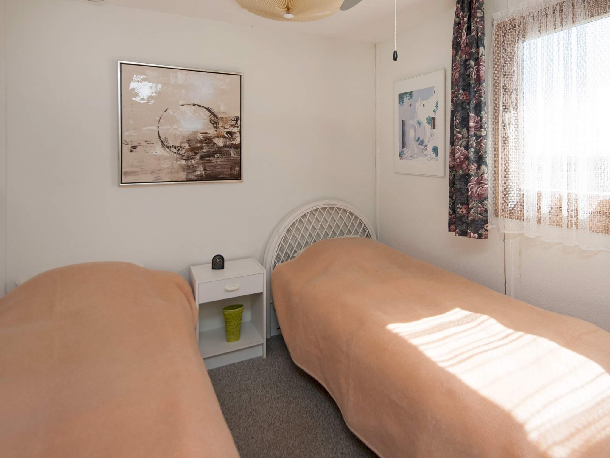 Ældre sommerhus med panoramaudsigt fra stue, udestue og den store veranda. Niveauforskellen mellem stue og udestue giver en god effekt. Der er åben forbindelse fra stuen til køkkenet. Sommerhuset har et værelse med køjeseng og et værelse med 2 enkeltsenge. Lille legeplads findes længere henne ad vejen.
