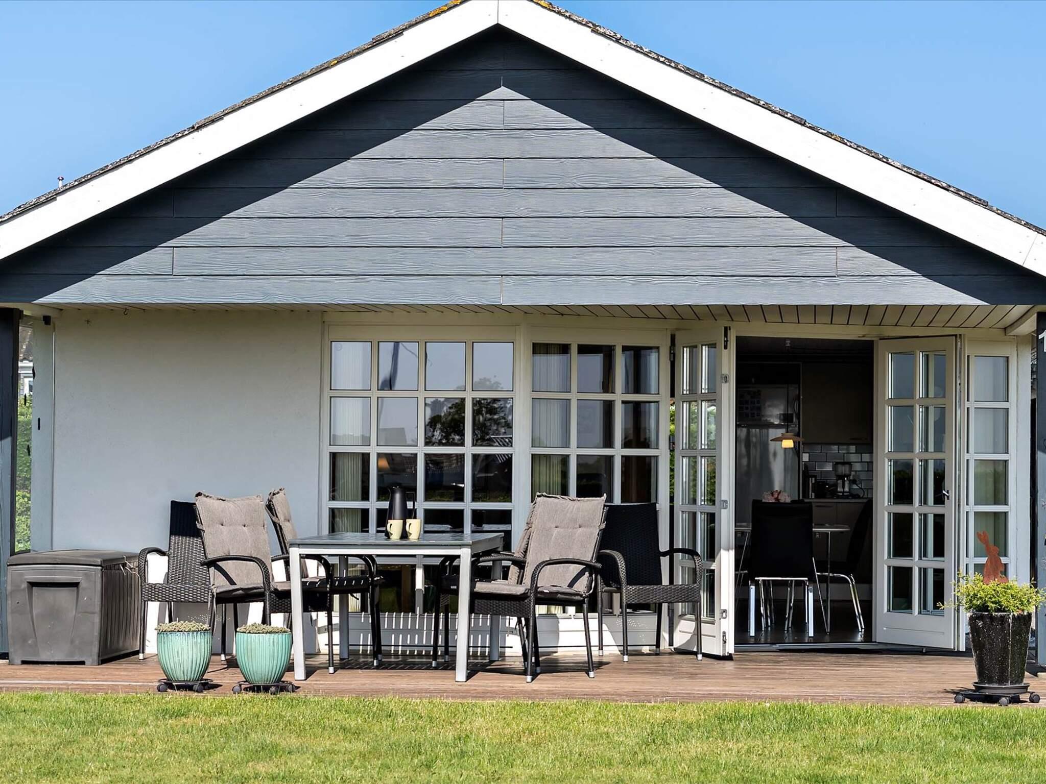 Husets dejlige køkken og stue giver adgang til den skønne delvist overdækkede træterrasse mod øst der indbyder til mange timers hygge og afslapning. De lune sommeraftener kan tilbringes på terrassen mod vest.