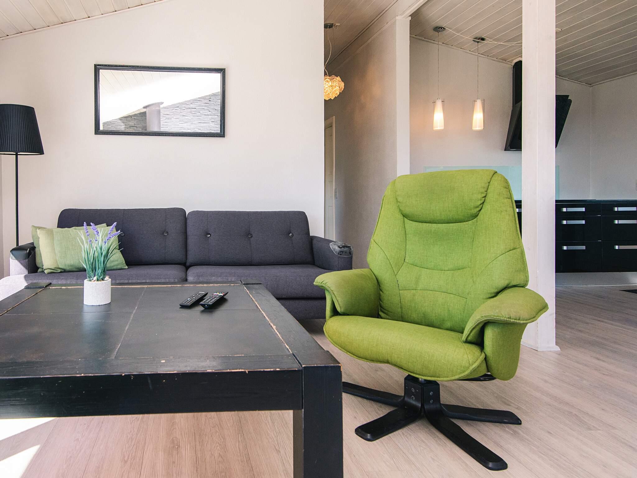 1 Opholdsstue: Brændeovn, radio, tv, høj stol