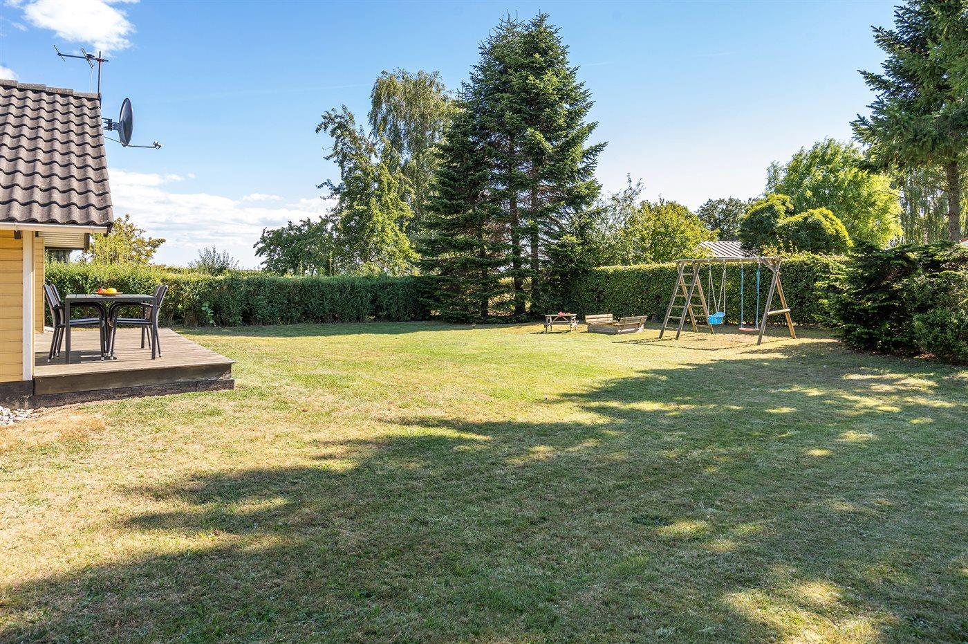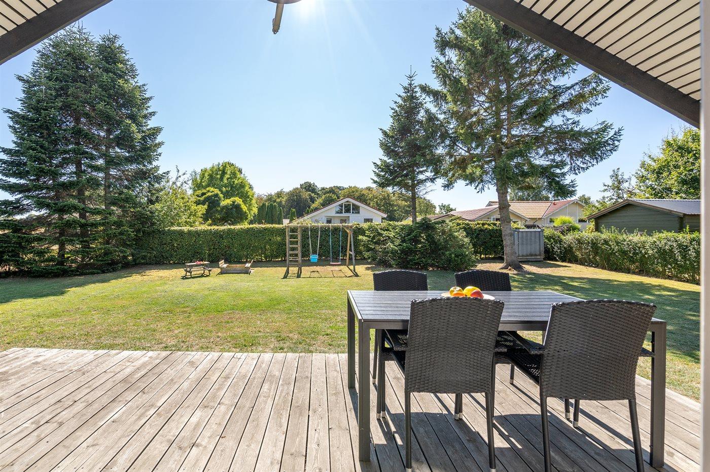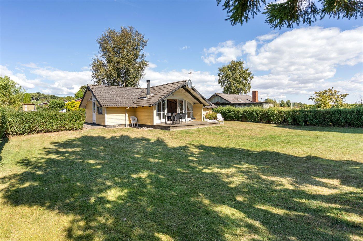 Nær dejlig sandstrand ligger dette sommerhus på en børnevenlig naturgrund i et skønt område med gode fiskemuligheder samt golf- og tennisbane.