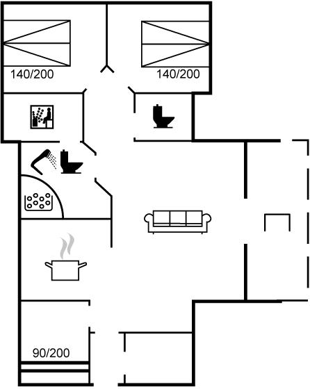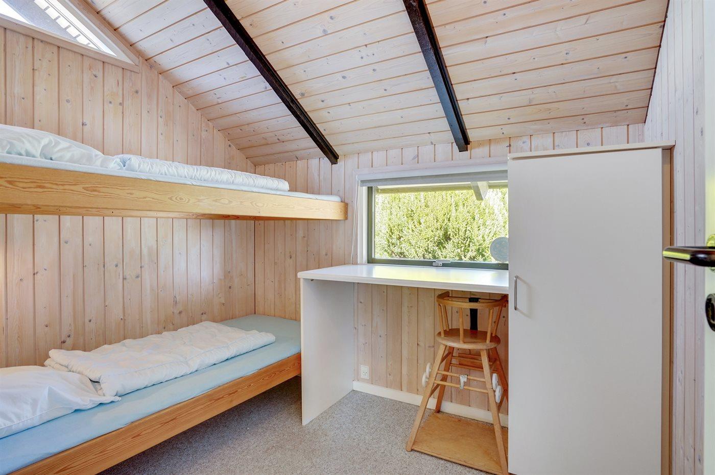 Der er i alt 3 soveværelser. Sovepladserne fordeler sig på: 4 sovepladser i dobbeltsenge. 2 sovepladser i køjeseng. Derudover er der 1 stk. barneseng.
