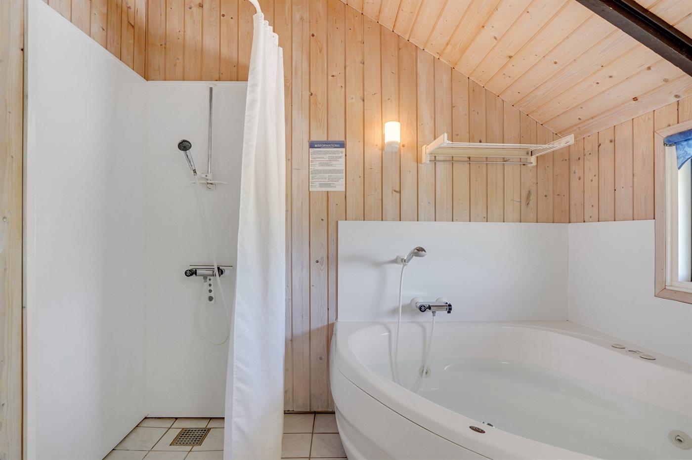 Der er 1 badeværelse med bruser og 1 toilet., heraf 1 gæstetoilet I saunaen er der mulighed for afslapning.