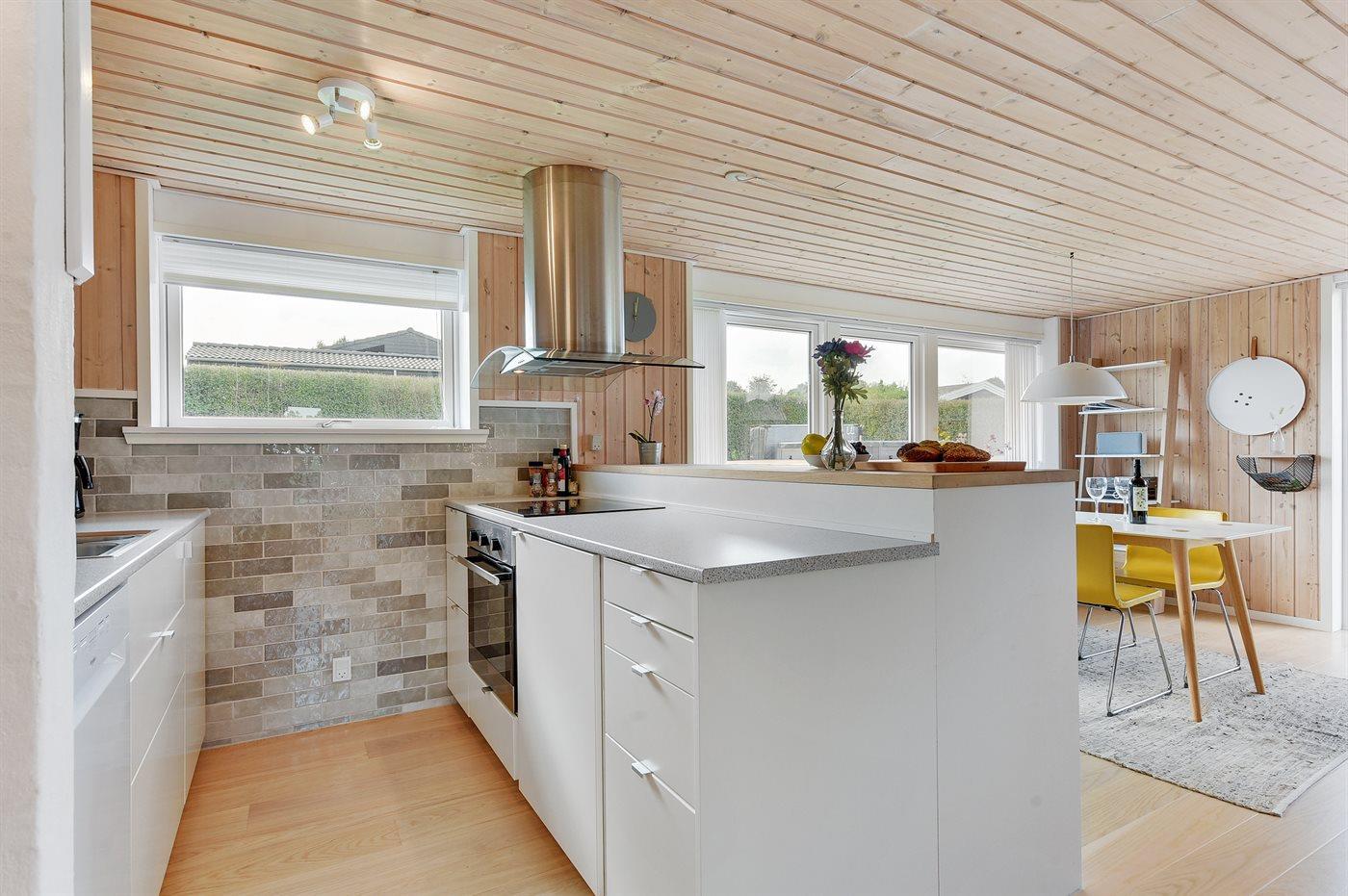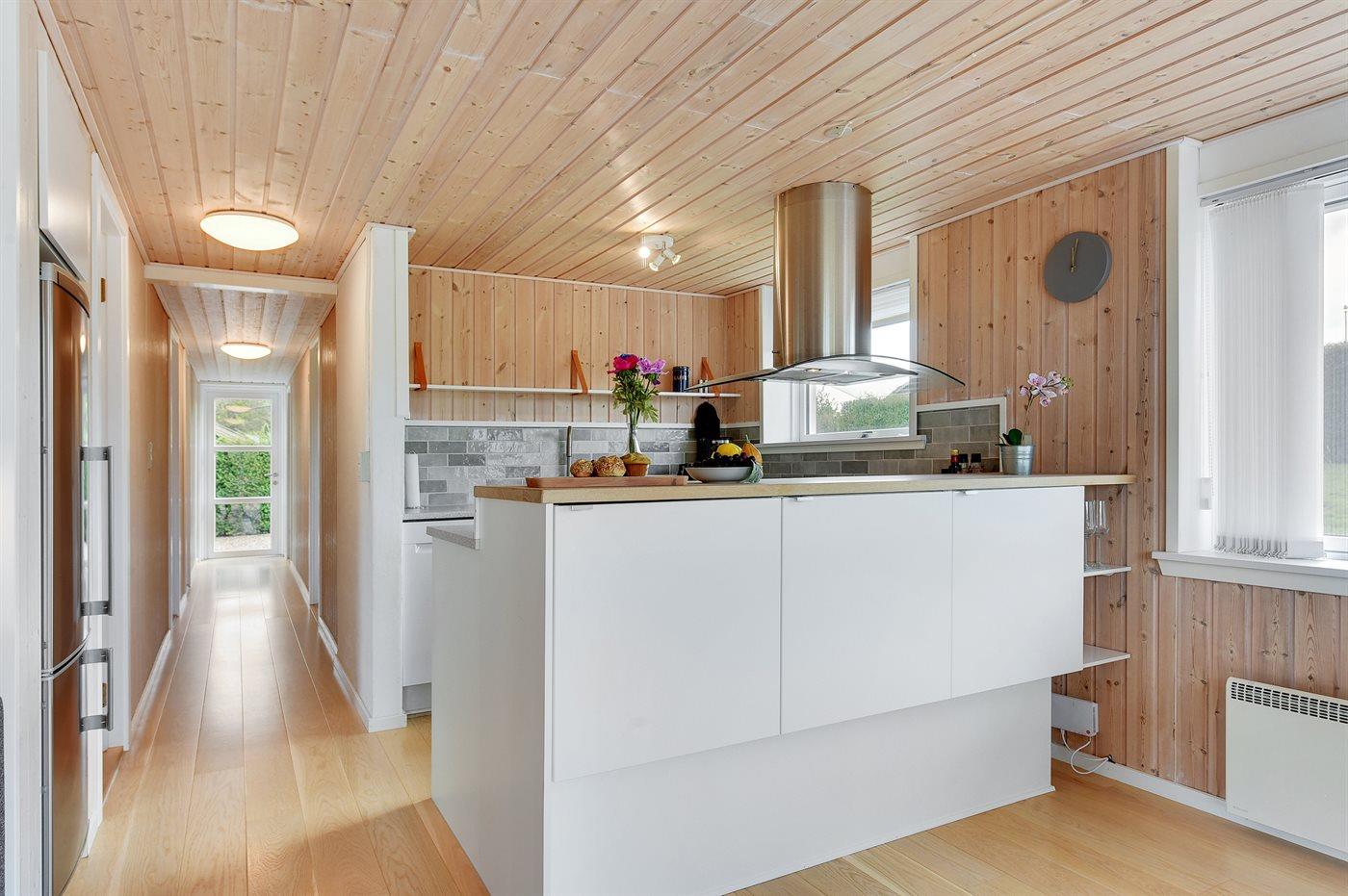 Køkkenet er udstyret med 1 køleskab. Der er 4 keramiske kogeplader, varmluftovn, mikrobølgeovn samt opvaskemaskine.