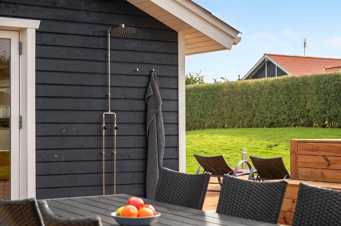 Ferieboligen er beliggende på en 810 m² stor havegrund. Der er 500 m til havet. Nærmeste forretning er beliggende i en afstand af 3000 m. Til ferieboligen hører 70 m² terrasseareal. Udendørs bruser. Grill til rådighed. Parkering ved ferieboligen.