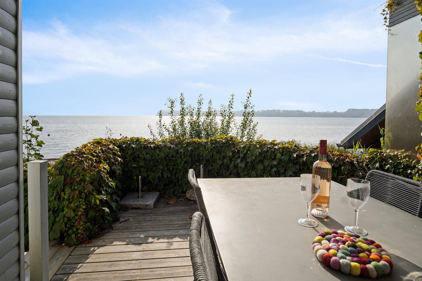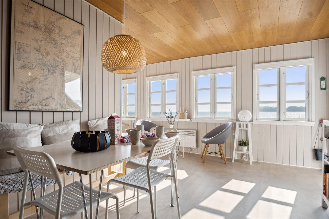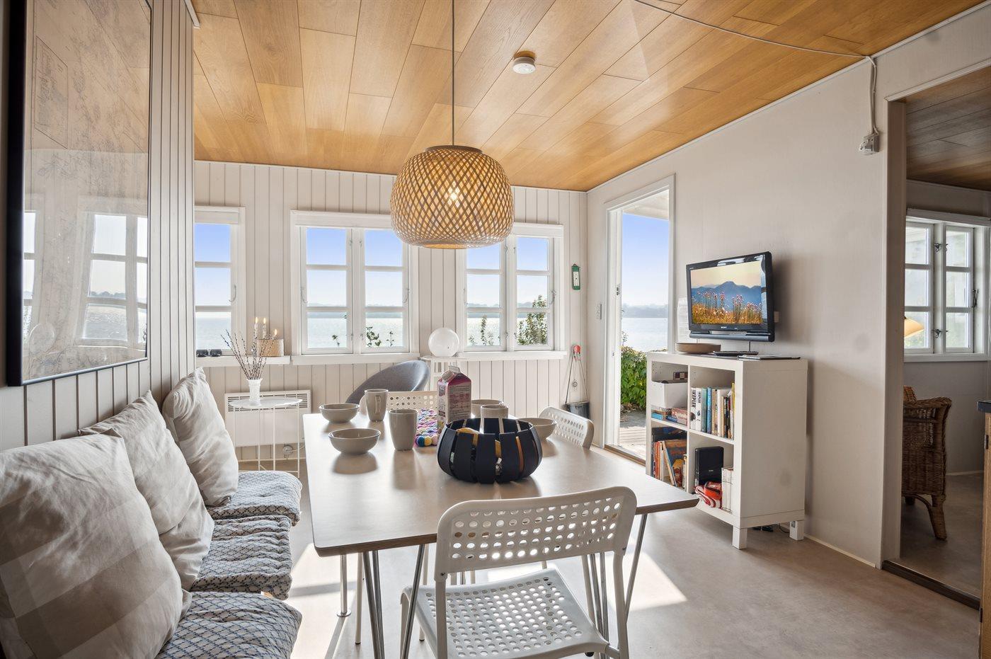 Sommerhuset ligger i allerførste række med en fantastisk panoramaudsigt over Lillebælt. Uanset årstiden vil man kunne nyde udsigten og roen både inde i huset, men også ude på terrassen.