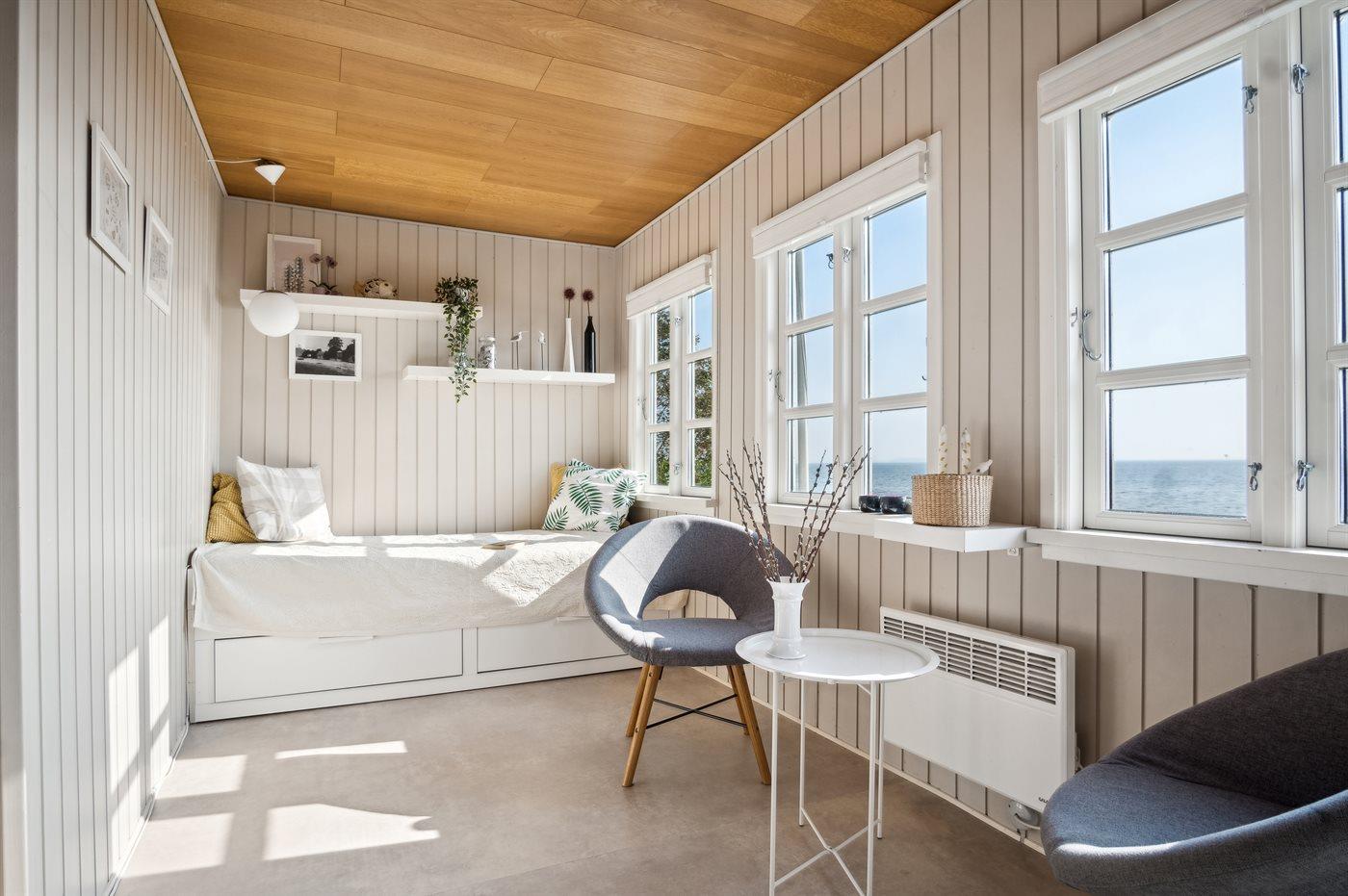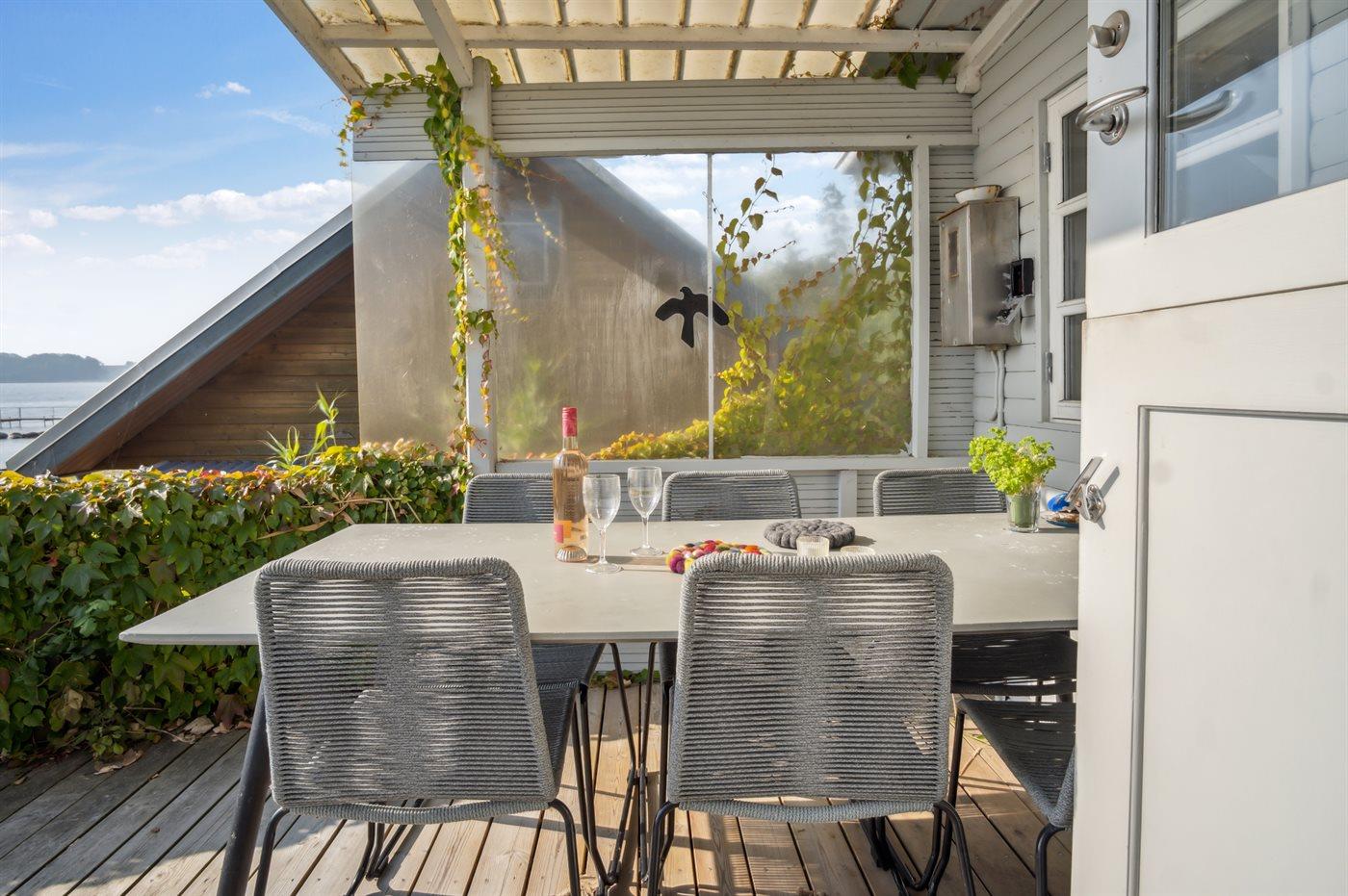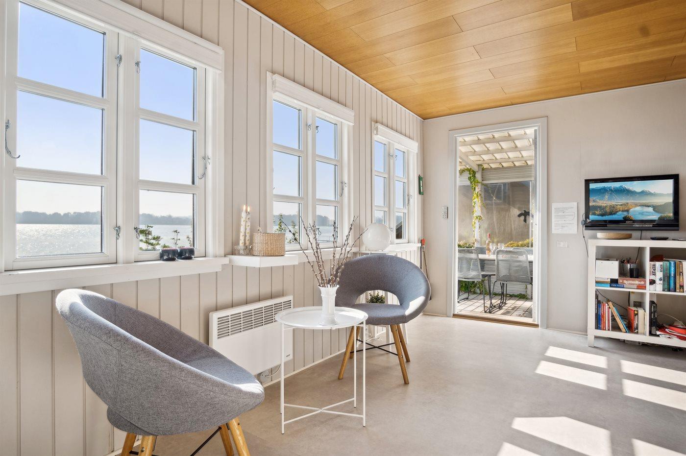Sommerhuset ligger i allerførste række med en fantastisk panoramaudsigt over Lillebælt. Uanset årstiden vil man kunne nyde udsigten og roen både inde i huset, men også ude på terrassen.