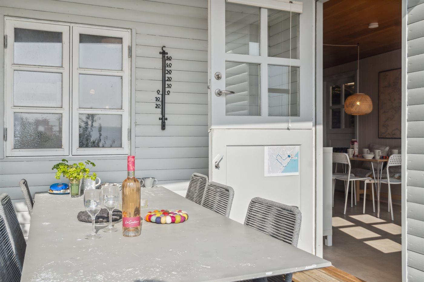 Udvendig er der god plads på de delvist overdækkede terrasser – her kan man tilbringe masser af timer i det fri. Parkering foregår på den nærliggende parkeringsplads, men der kan køres til huset for aflæsning af bagage m.m.