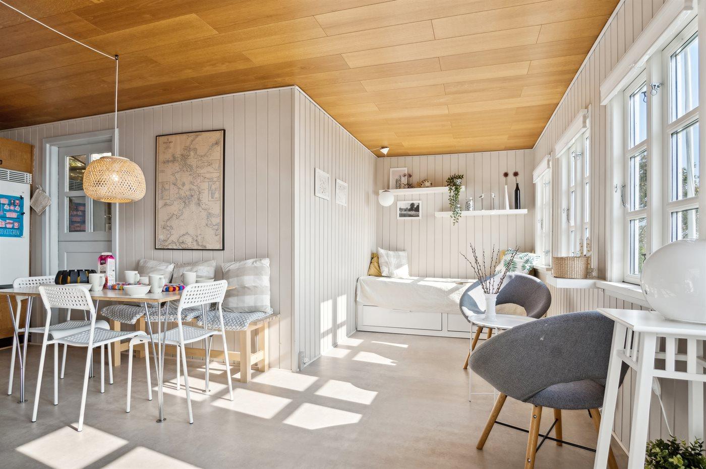Huset er perfekt til ét par eller den lille familie, da der findes ét soverum og mulighed for opredning i stuen. Der findes et fint lille køkken med bl.a. opvaskemaskine samt et fint lille badeværelse.