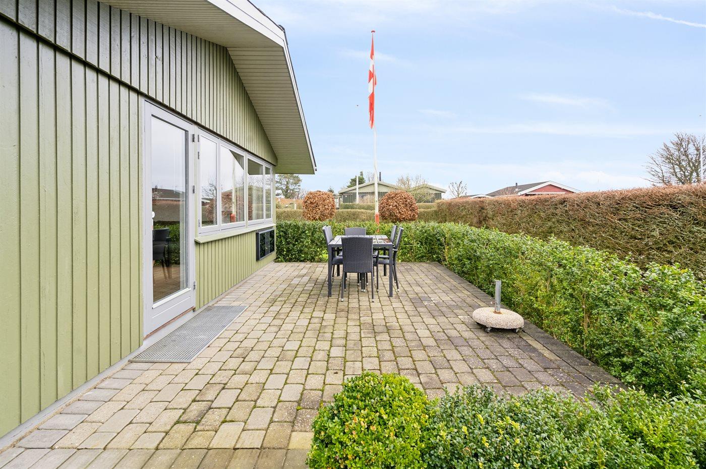 Ferieboligen er beliggende på en 680 m² stor havegrund. Der er 650 m til havet. Nærmeste forretning er beliggende i en afstand af 4000 m. Der er en golfbane i en afstand af 16000 m. Til ferieboligen hører 20 m² terrasseareal. Desuden er der 12 m² overdækket terrasse. Gynge. Sandkasse. Bålsted. Grill til rådighed. Der er garage til rådighed. Parkering ved ferieboligen.