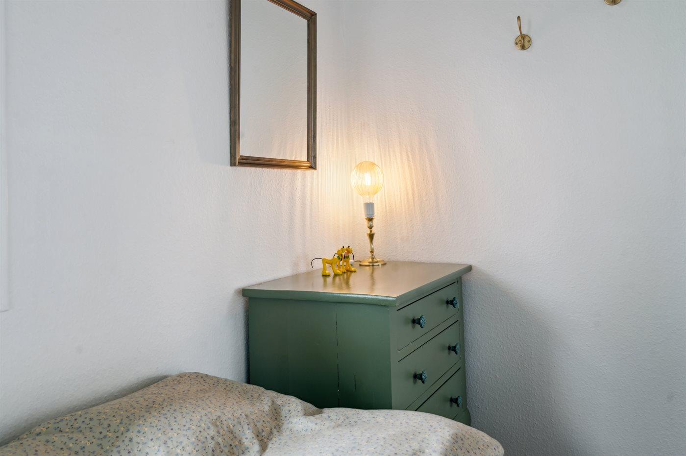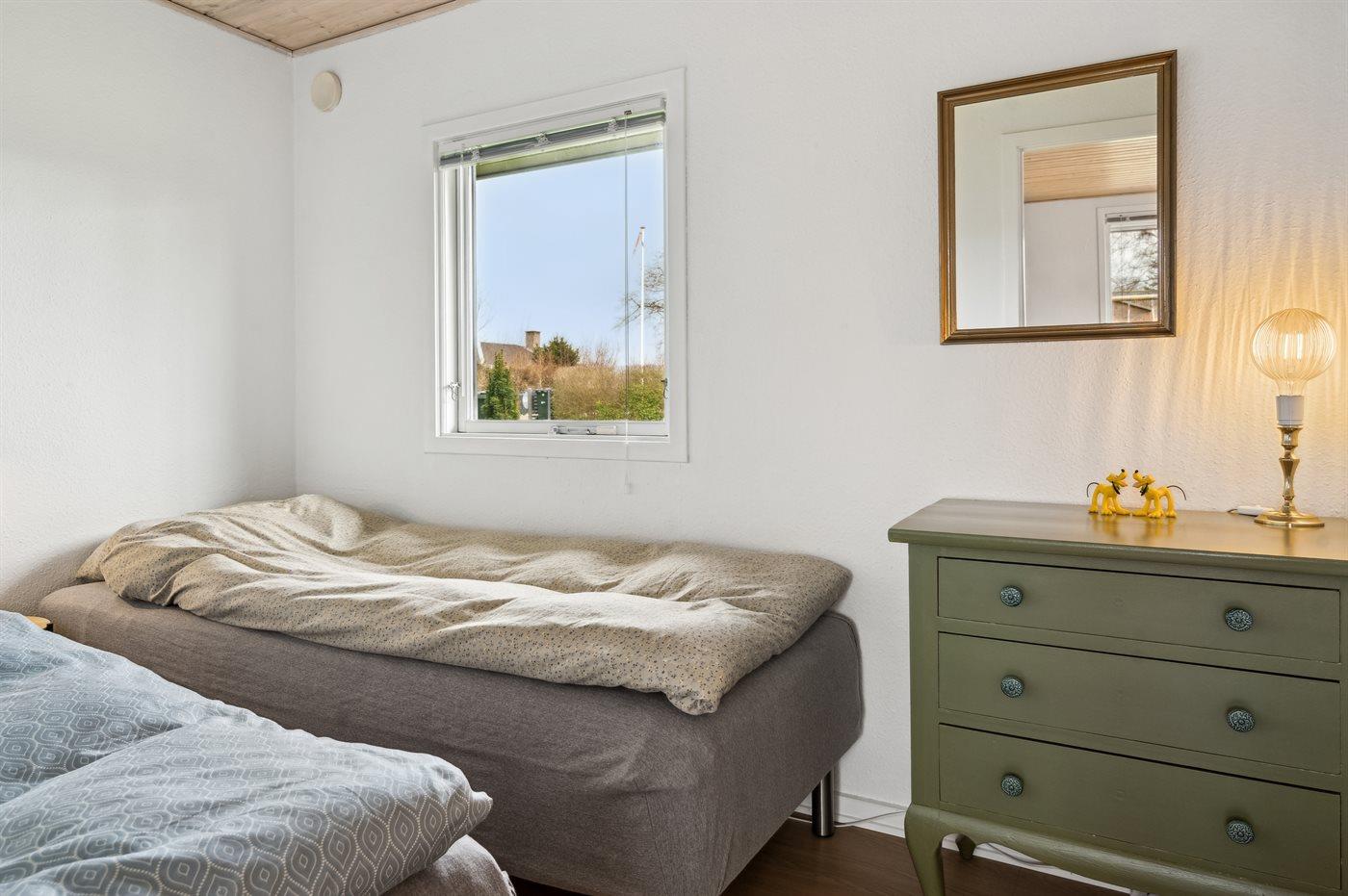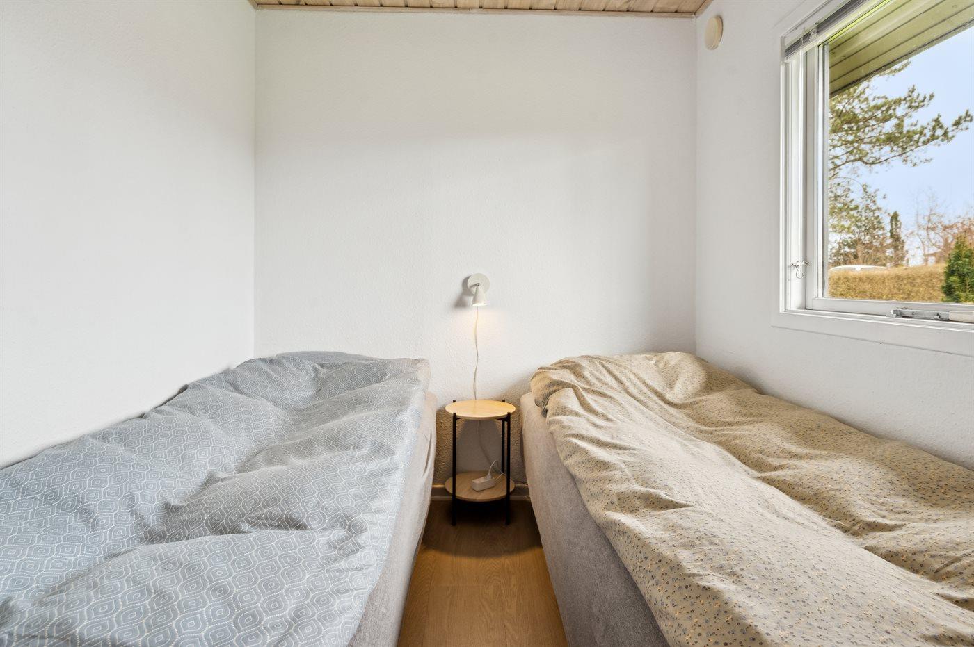 Der er i alt 3 soveværelser. Sovepladserne fordeler sig på: 2 sovepladser i dobbeltseng. 2 sovepladser i enkeltsenge. 1 soveplads i sovesofa (enkelt). Derudover er der 1 stk. barneseng.