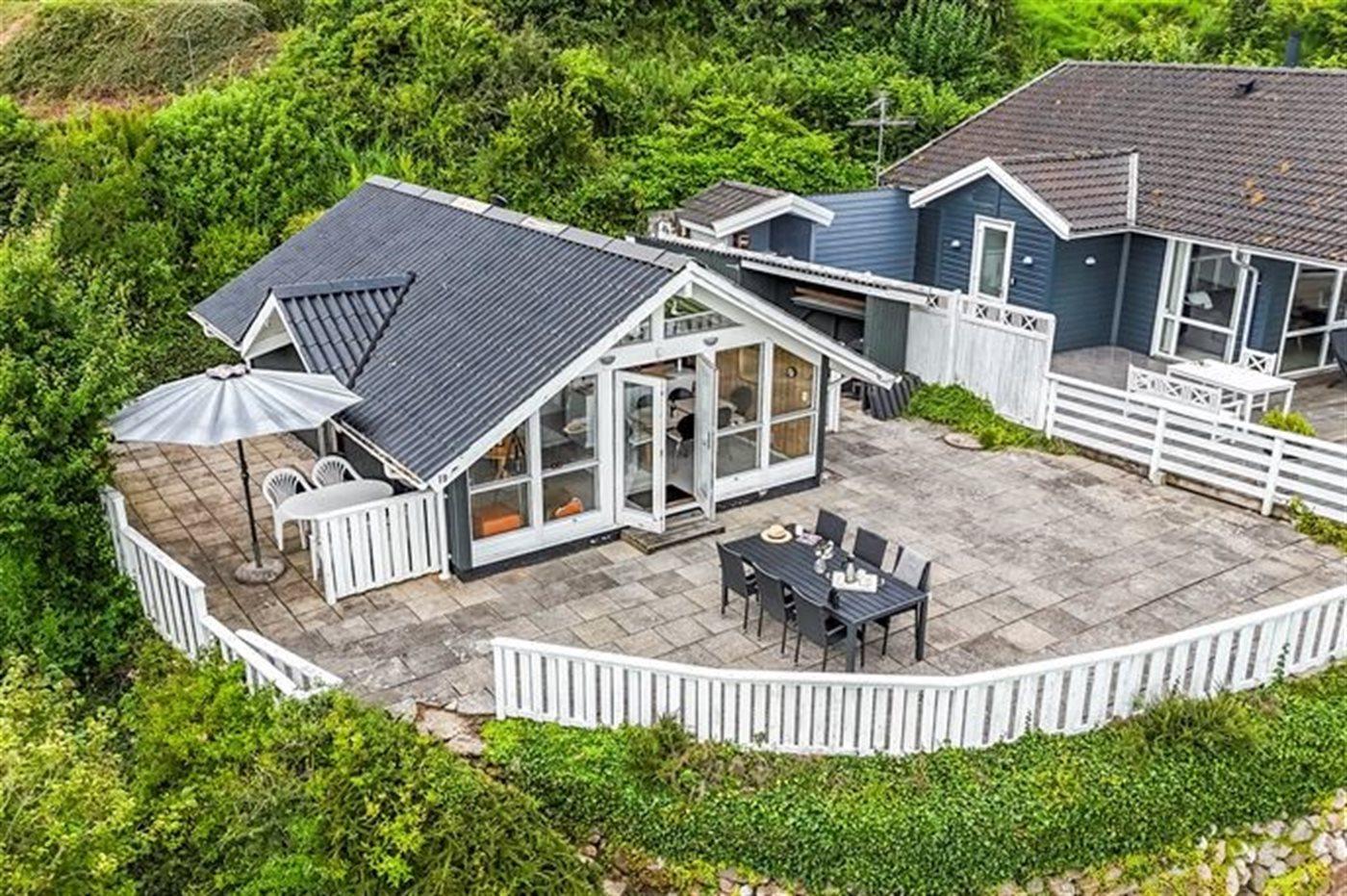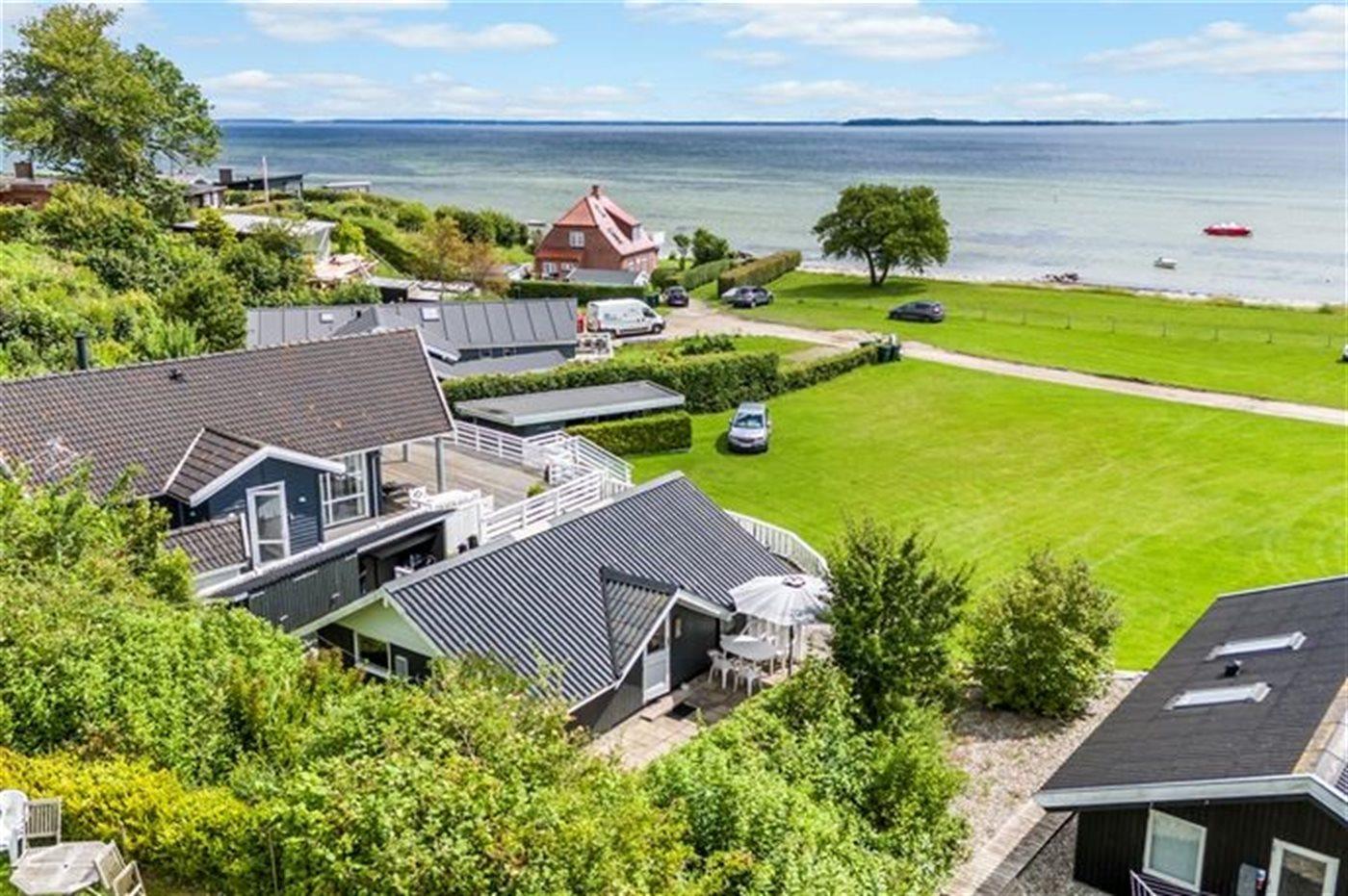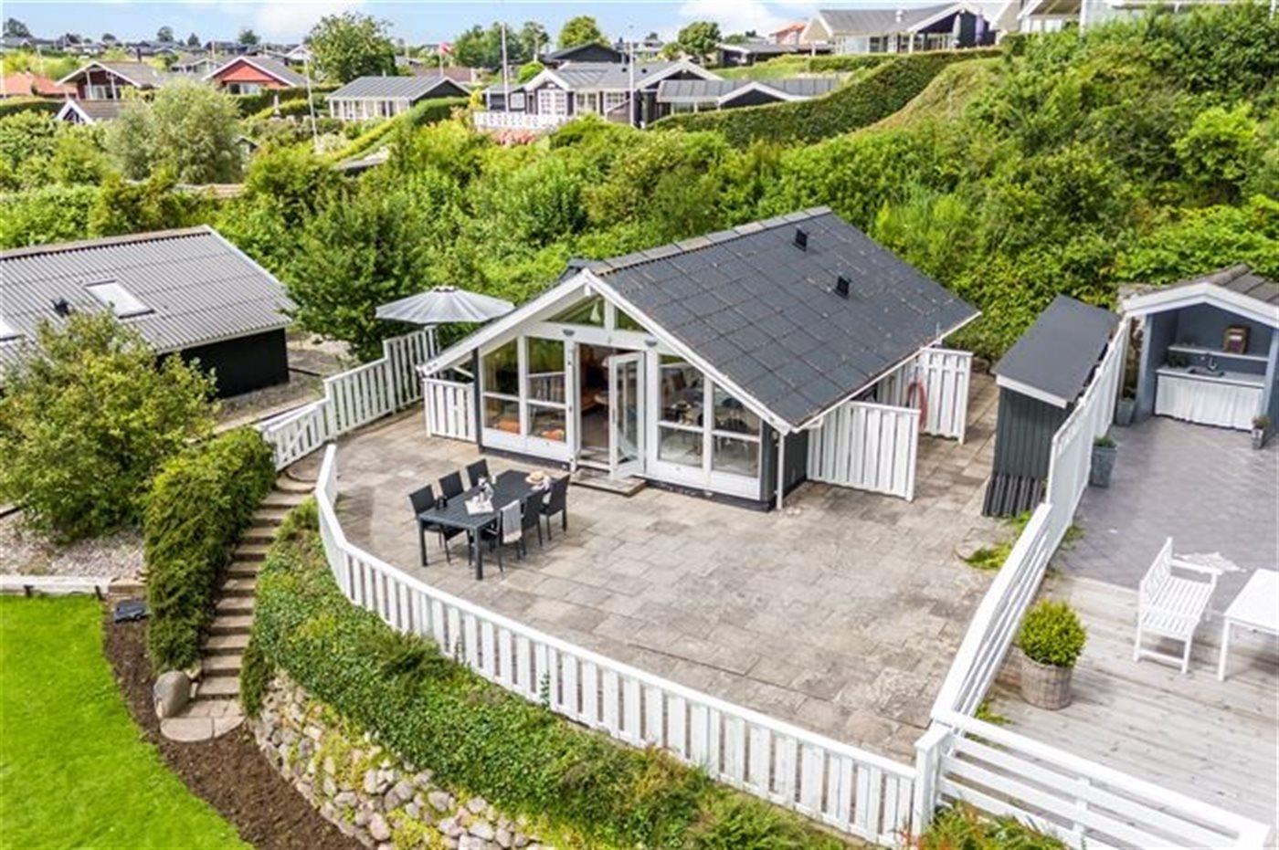 Dette lille og hyggelige sommerhus, med panoramaudsigt over Lillebælt, finder du i et populært ferieområde.