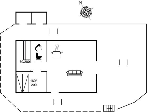 Ferieboligen er beliggende på en 800 m² stor havegrund. Der er 75 m til havet. Nærmeste forretning er beliggende i en afstand af 5000 m. Der er en golfbane i en afstand af 16000 m. Til ferieboligen hører åbent terrasseareal. Grill til rådighed. Parkering ved ferieboligen.