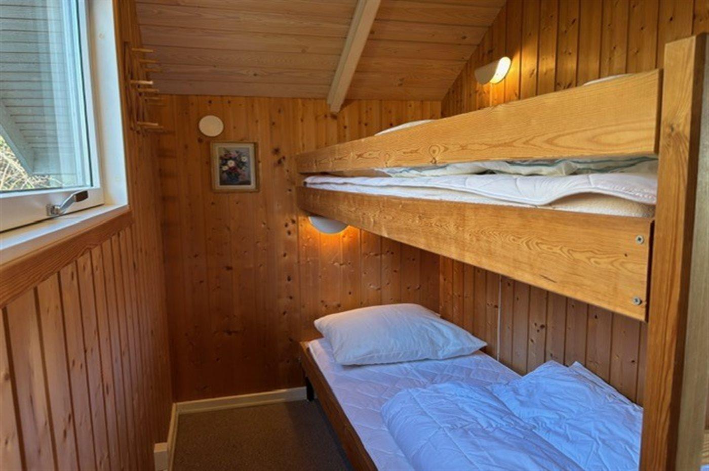 Der er i alt 2 soveværelser. Sovepladserne fordeler sig på: 2 sovepladser i dobbeltseng. 2 sovepladser i køjeseng.
