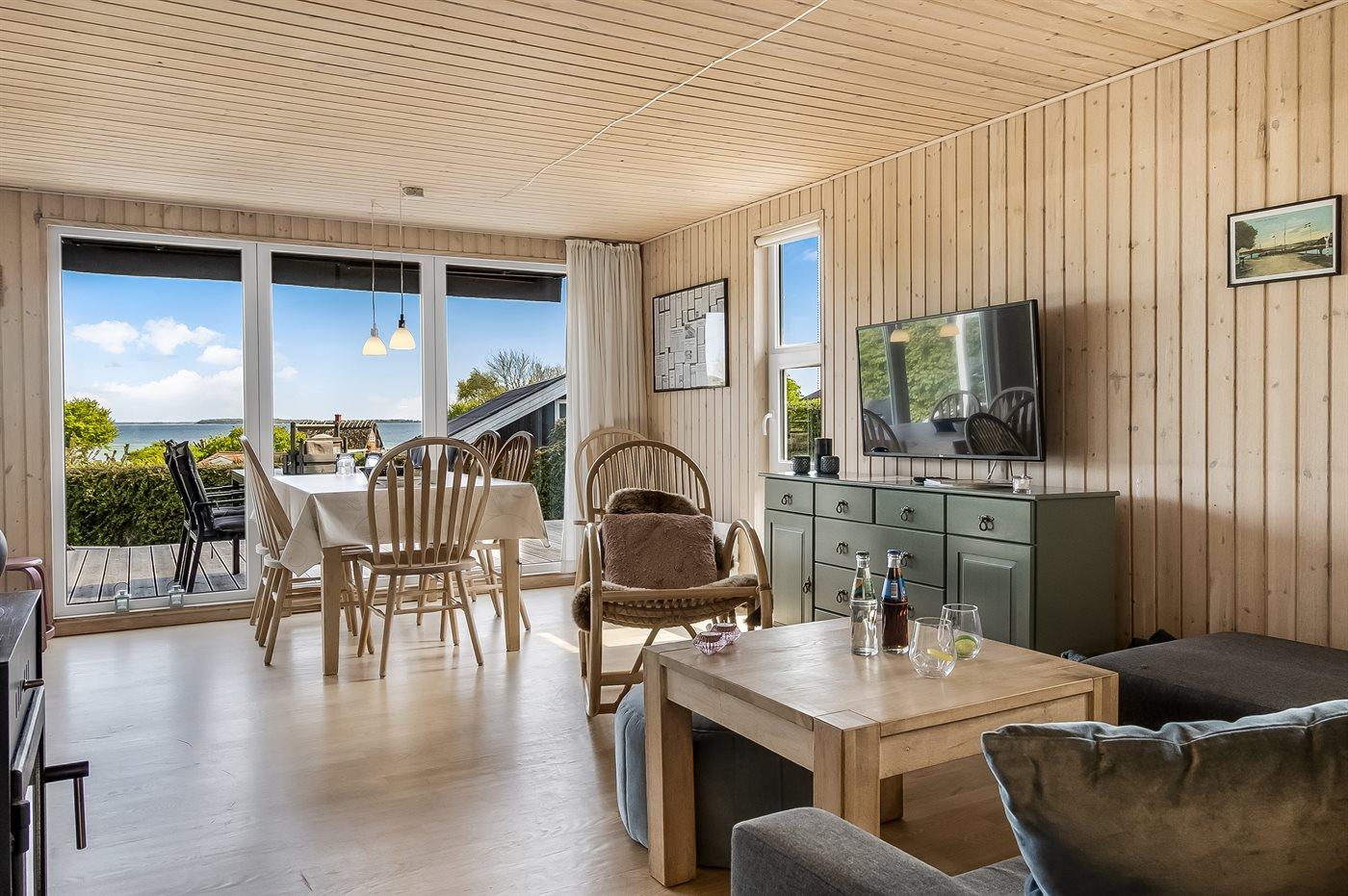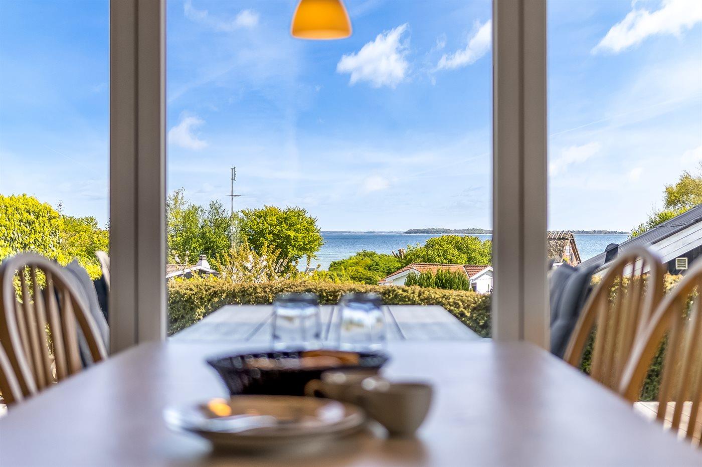 Med dette sommerhus får I en helt fantastisk udsigt, som kan nydes både inde fra huset og udenfor fra terrassen. Her kan I følge den livlige trafik på vandet med både, kitesurfere og andre aktiviteter, der skaber en levende og inspirerende stemning hele dagen. Selv når I tilbereder maden i det velindrettede køkken, kan I nyde udsigten og lade blikket glide ud over horisonten.