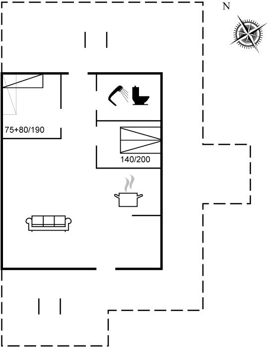 Huset råder over to soveværelser, hvoraf det ene er indrettet med to enkeltsenge. Det skal bemærkes, at den ene seng har en længde på 1,90 meter. Alt i alt byder huset på en charmerende kombination af komfort og naturoplevelser- perfekt til en afslappende ferie nær vandet.