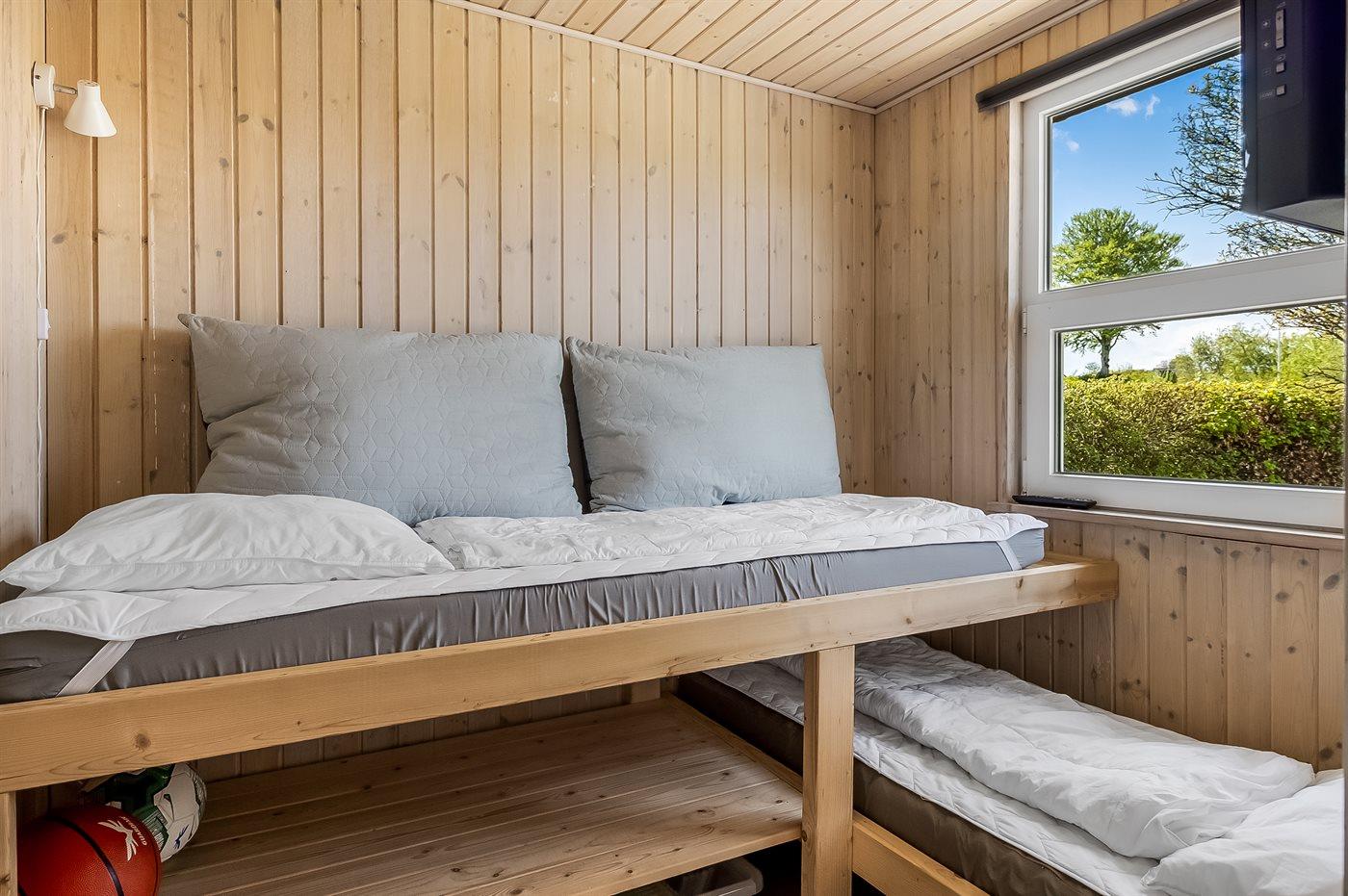 Der er i alt 2 soveværelser. Sovepladserne fordeler sig på: 2 sovepladser i dobbeltseng. 1 soveplads i enkeltseng.1 soveplads i køjeseng.