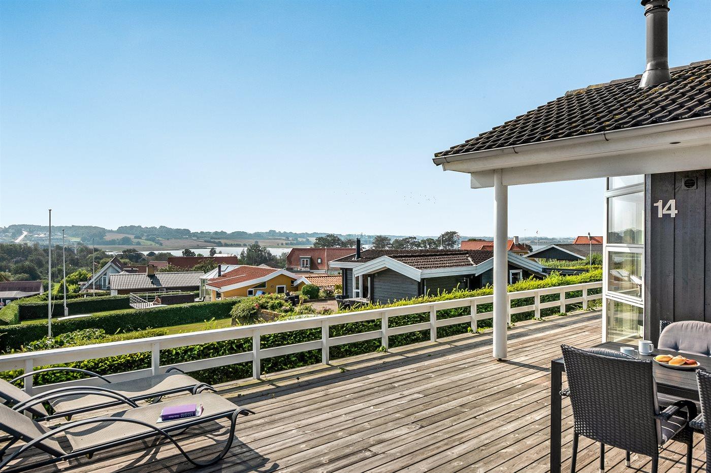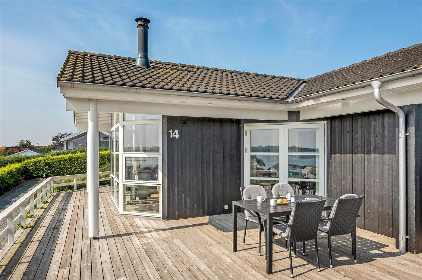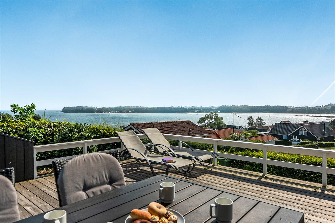 Arkitekttegnet sommerhus i Hejlsminde med panoramaudsigt over Lillebælt og lystbådehavnen.