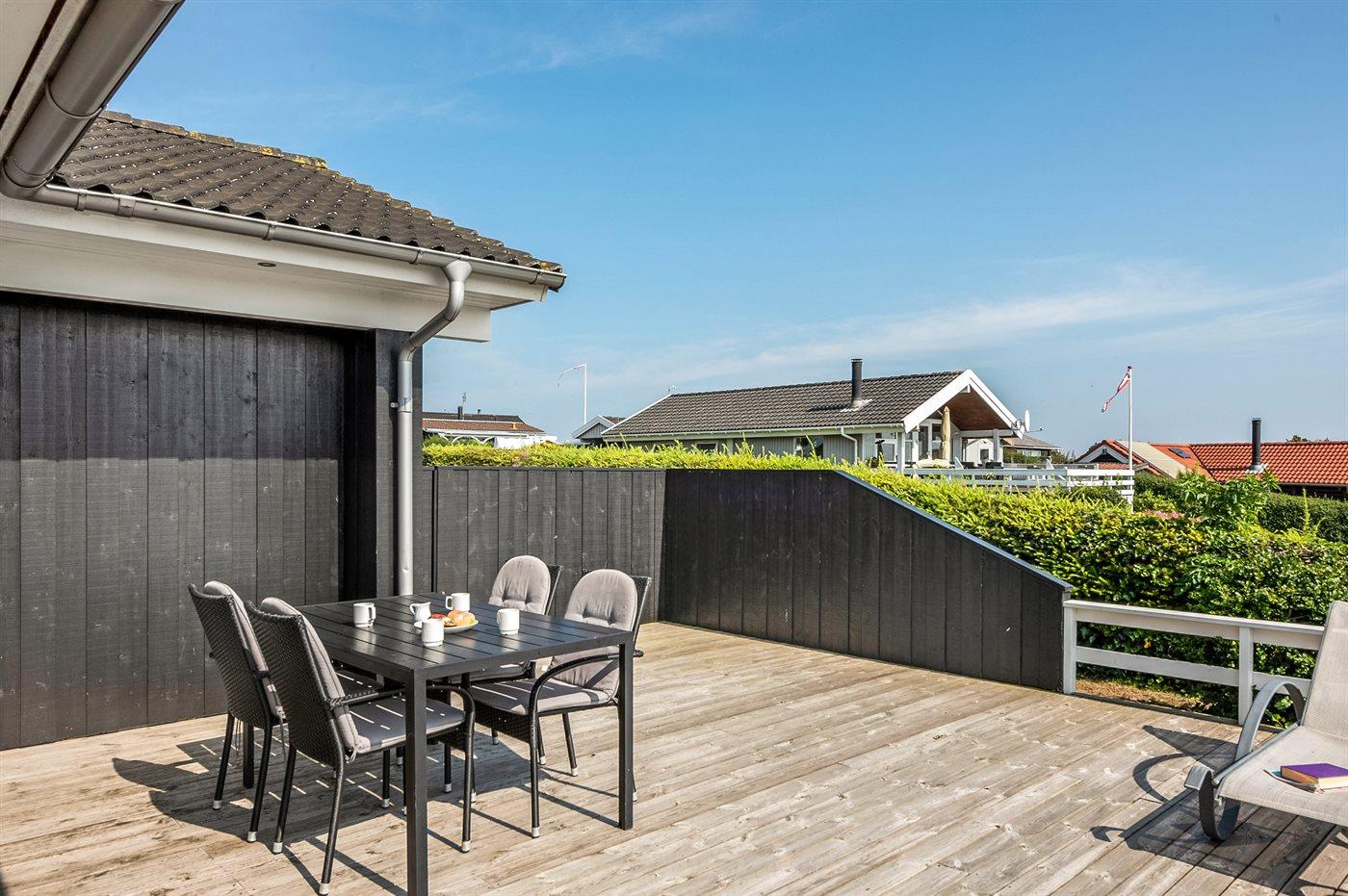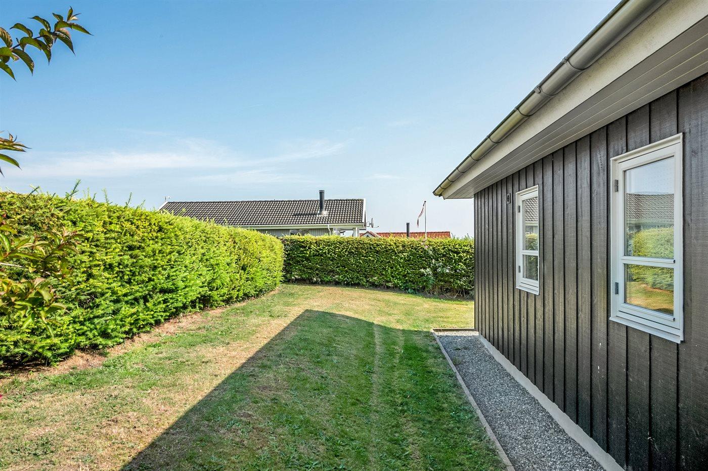 Ferieboligen er beliggende på en 610 m² stor havegrund. Der er 150 m til havet. Nærmeste forretning er beliggende i en afstand af 500 m. Til ferieboligen hører 65 m² terrasseareal. Desuden er der 22 m² overdækket terrasse. Gynge. Sandkasse. Parkering ved ferieboligen.