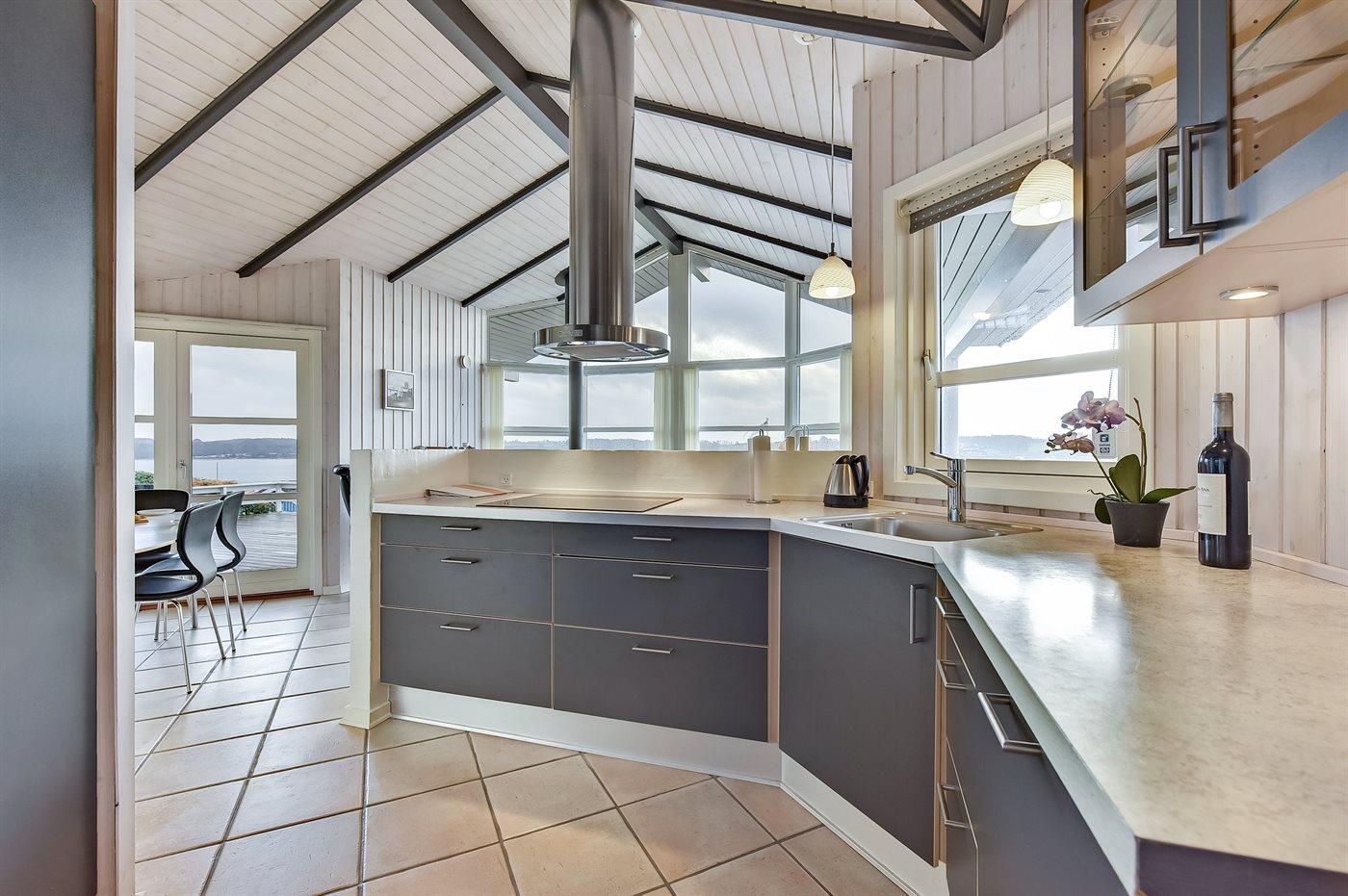Køkkenet er udstyret med 1 køleskab. Der er 4 keramiske kogeplader, varmluftovn, mikrobølgeovn samt opvaskemaskine.