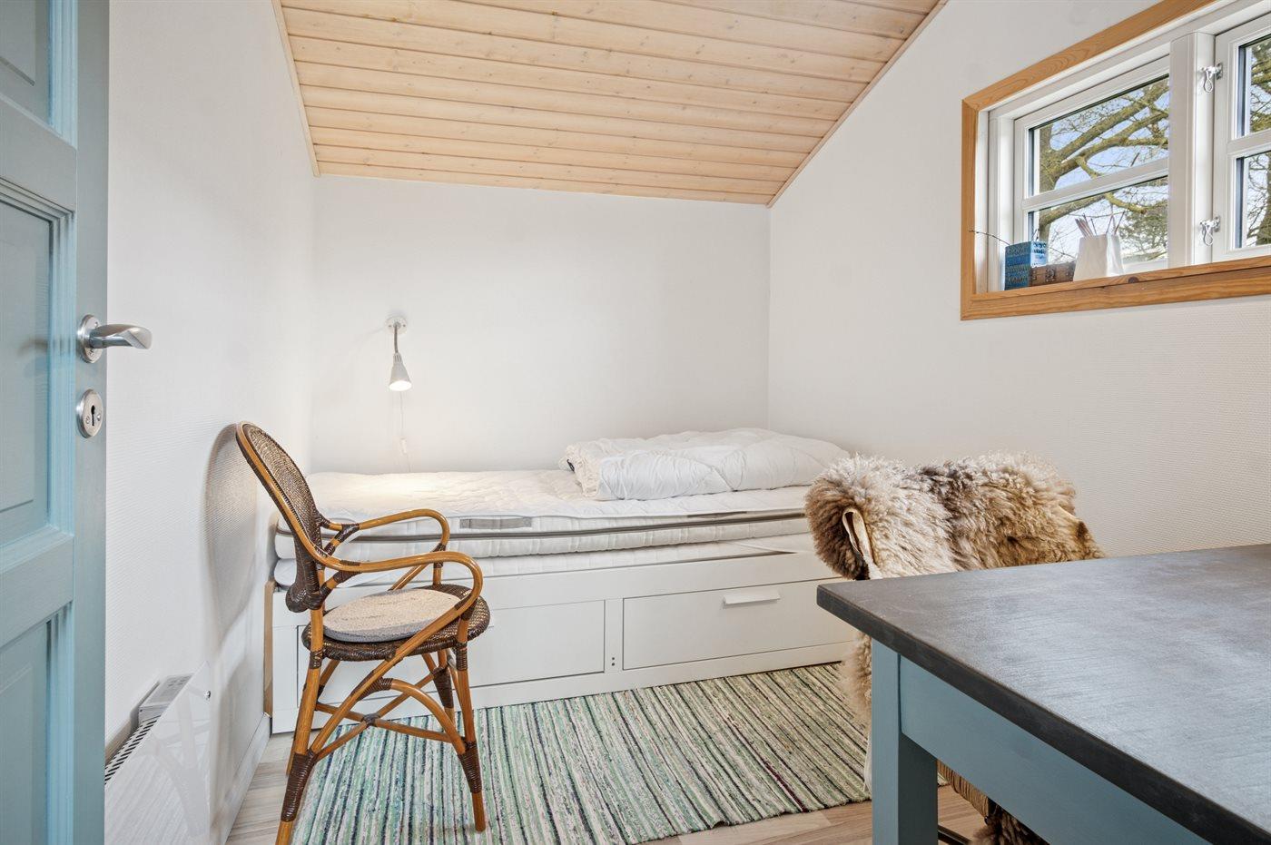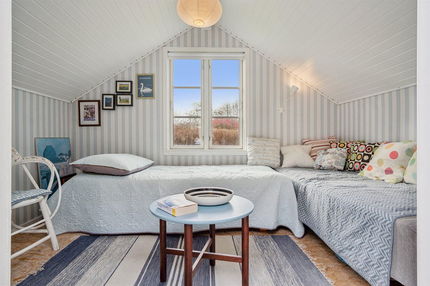 Der er i alt 3 soveværelser. Sovepladserne fordeler sig på: 2 sovepladser i dobbeltseng. 3 sovepladser i enkeltsenge. Derudover er der 1 stk. barneseng.
