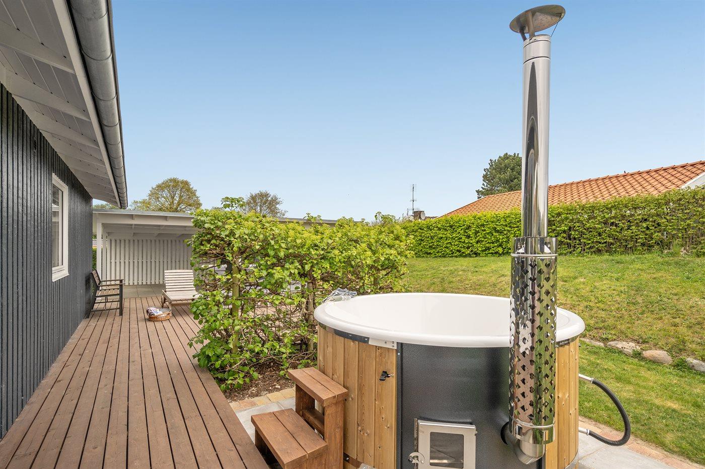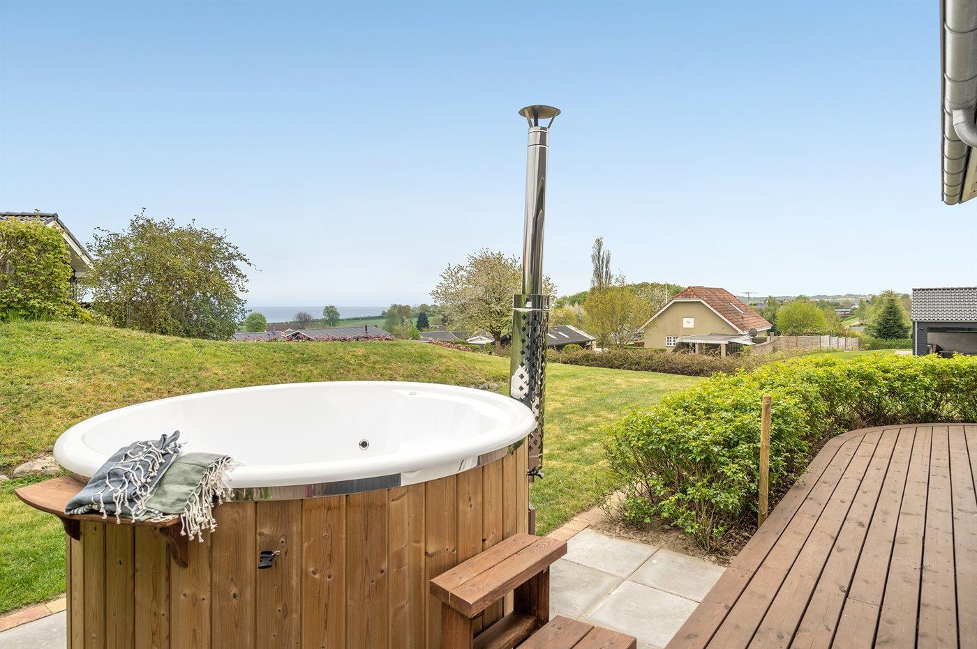 Hyggeligt sommerhus med havudsigt, spa og legerum tæt på vandet i naturskønne omgivelser.