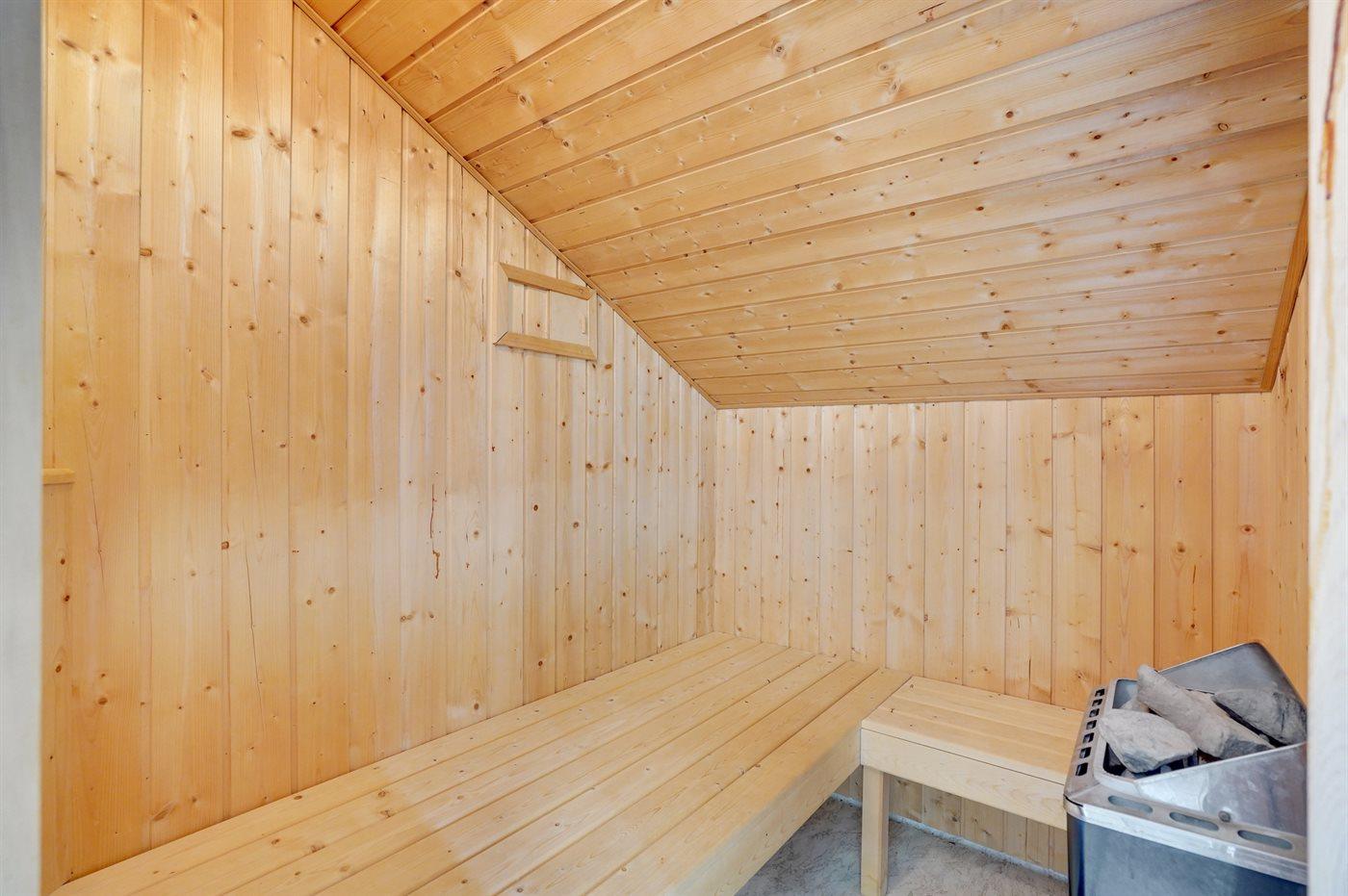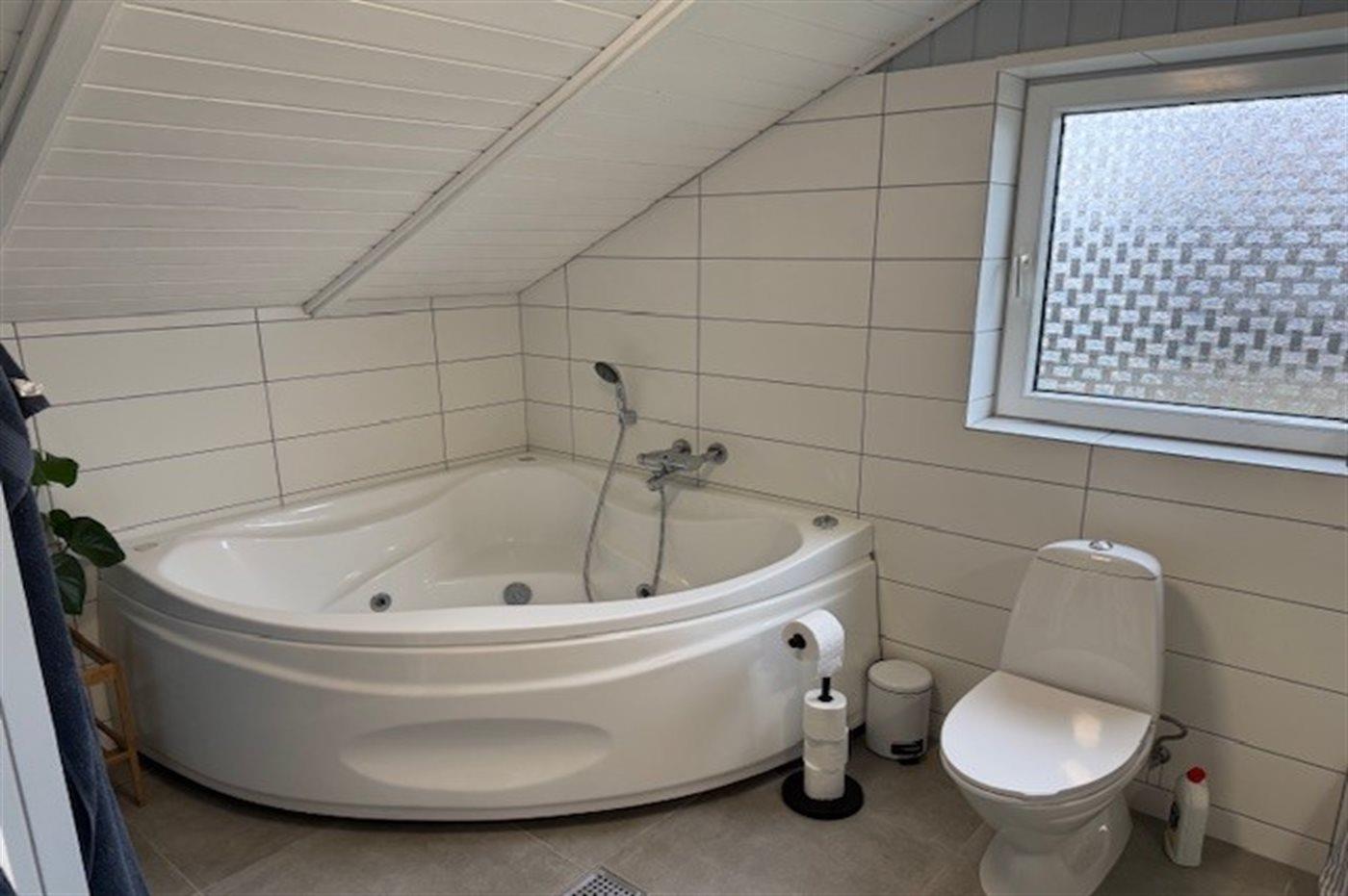 Der er 1 badeværelse med bruseniche og 2 toiletter, heraf 1 gæstetoilet. Der er gulvvarme på 1 badeværelse. Der er gulvvarme på gæstetoilettet. I saunaen er der mulighed for afslapning.