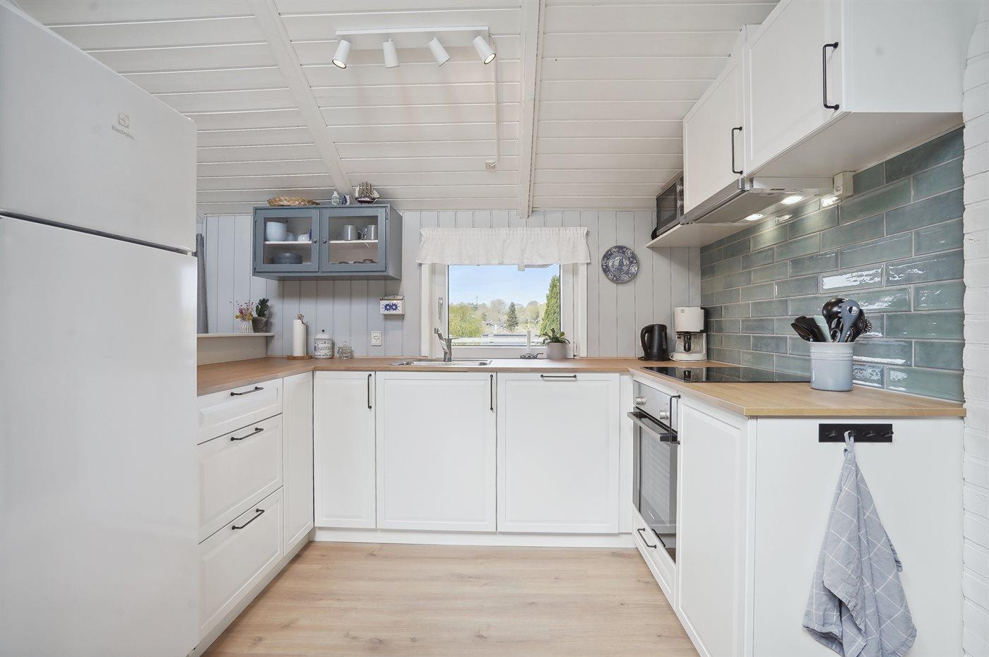 Køkkenet er udstyret med 1 køleskab. Der er 4 keramiske kogeplader, varmluftovn, mikrobølgeovn samt opvaskemaskine.