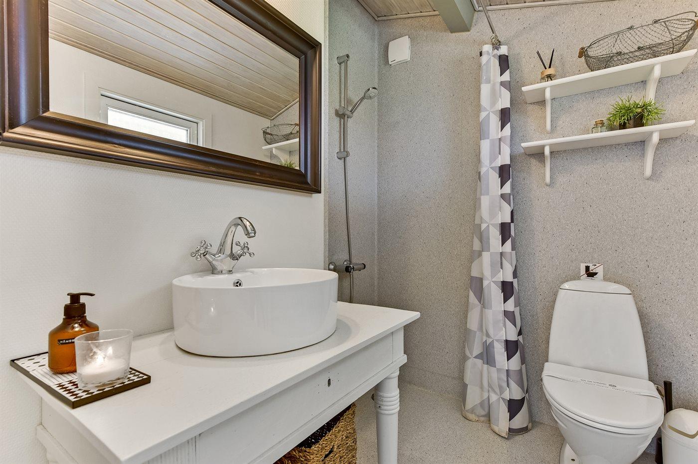Der er 1 badeværelse med bruseniche og 1 toilet.