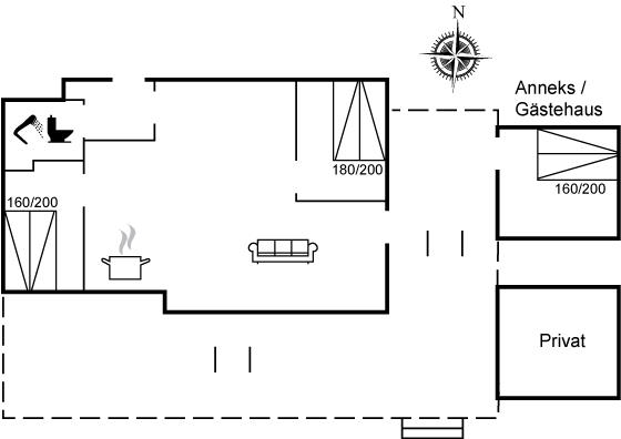 Der er i alt 3 soveværelser. Sovepladserne fordeler sig på: 6 sovepladser i dobbeltsenge.2 af disse sovepladser befinder sig i et anneks. Derudover er der 1 stk. barneseng.