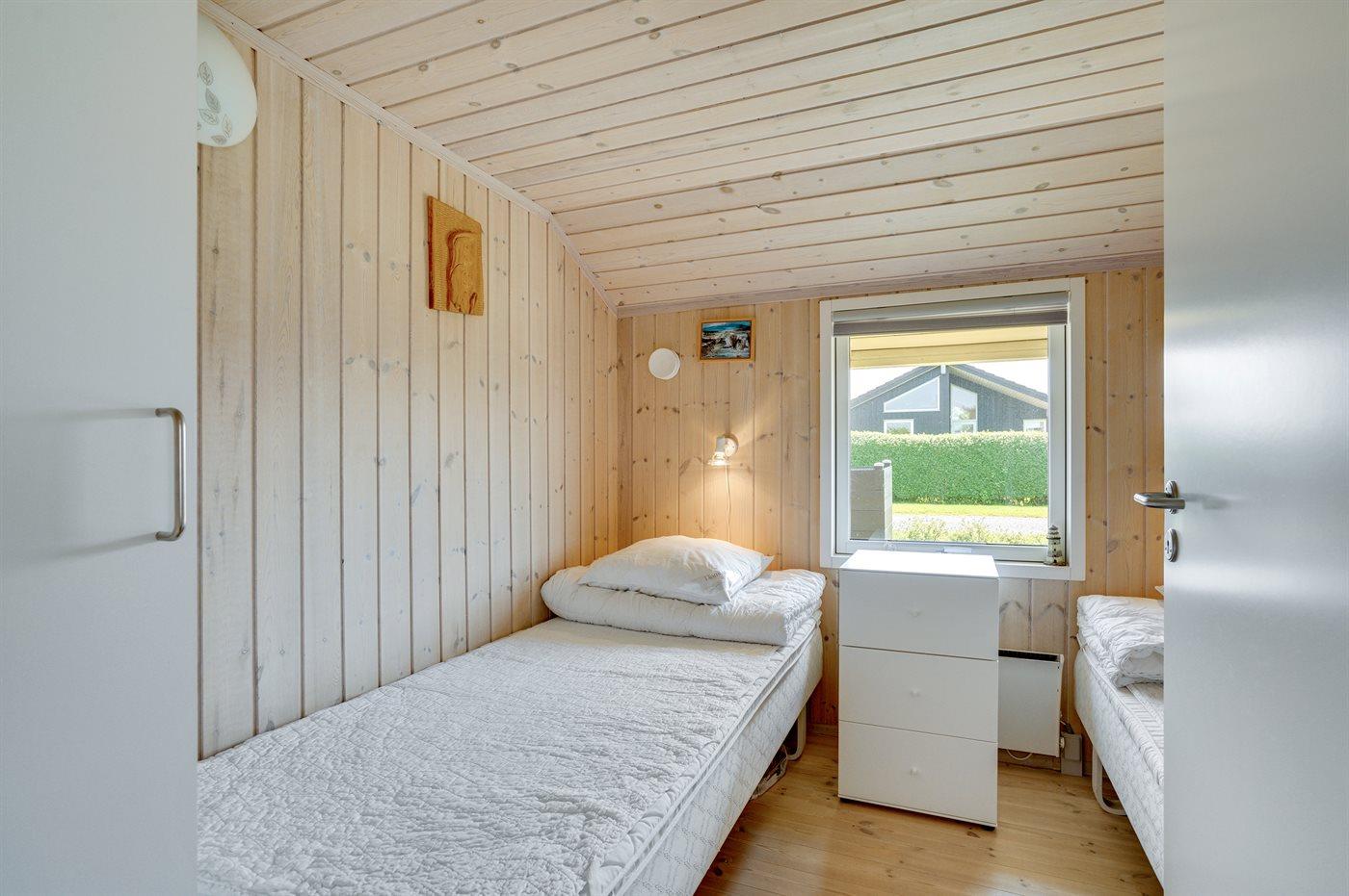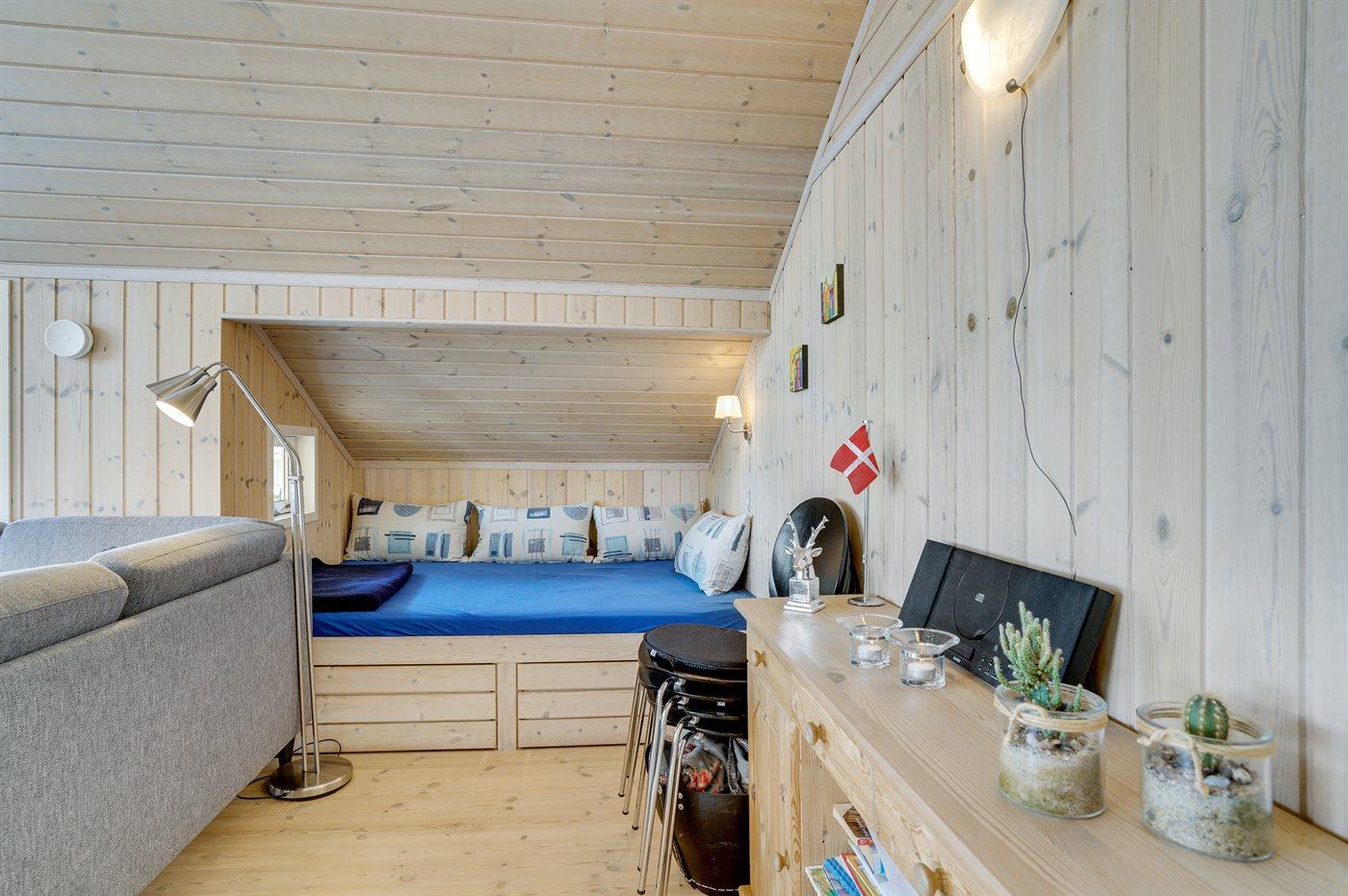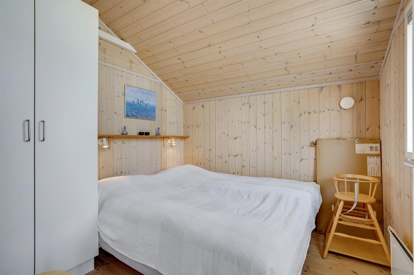Der er i alt 2 soveværelser. Sovepladserne fordeler sig på: 2 sovepladser i dobbeltseng. 2 sovepladser i enkeltsenge. Derudover er der 1 stk. barneseng.