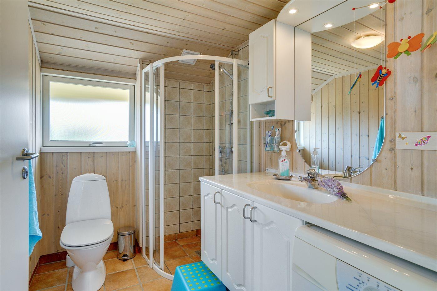 Der er 1 badeværelse med bruser og 1 toilet.. Der er gulvvarme på 1 badeværelse.