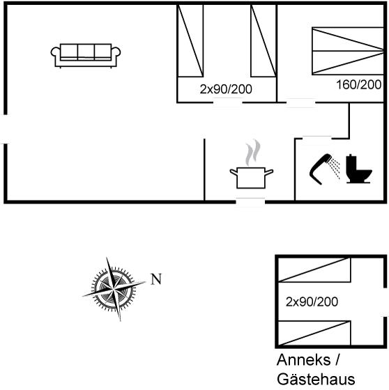 Der er i alt 3 soveværelser. Sovepladserne fordeler sig på: 2 sovepladser i dobbeltseng. 4 sovepladser i enkeltsenge.2 af disse sovepladser befinder sig i et anneks.