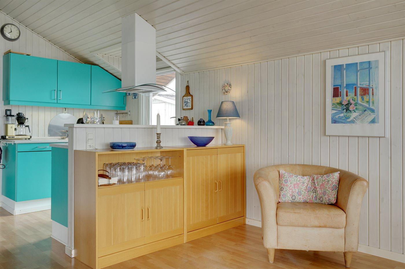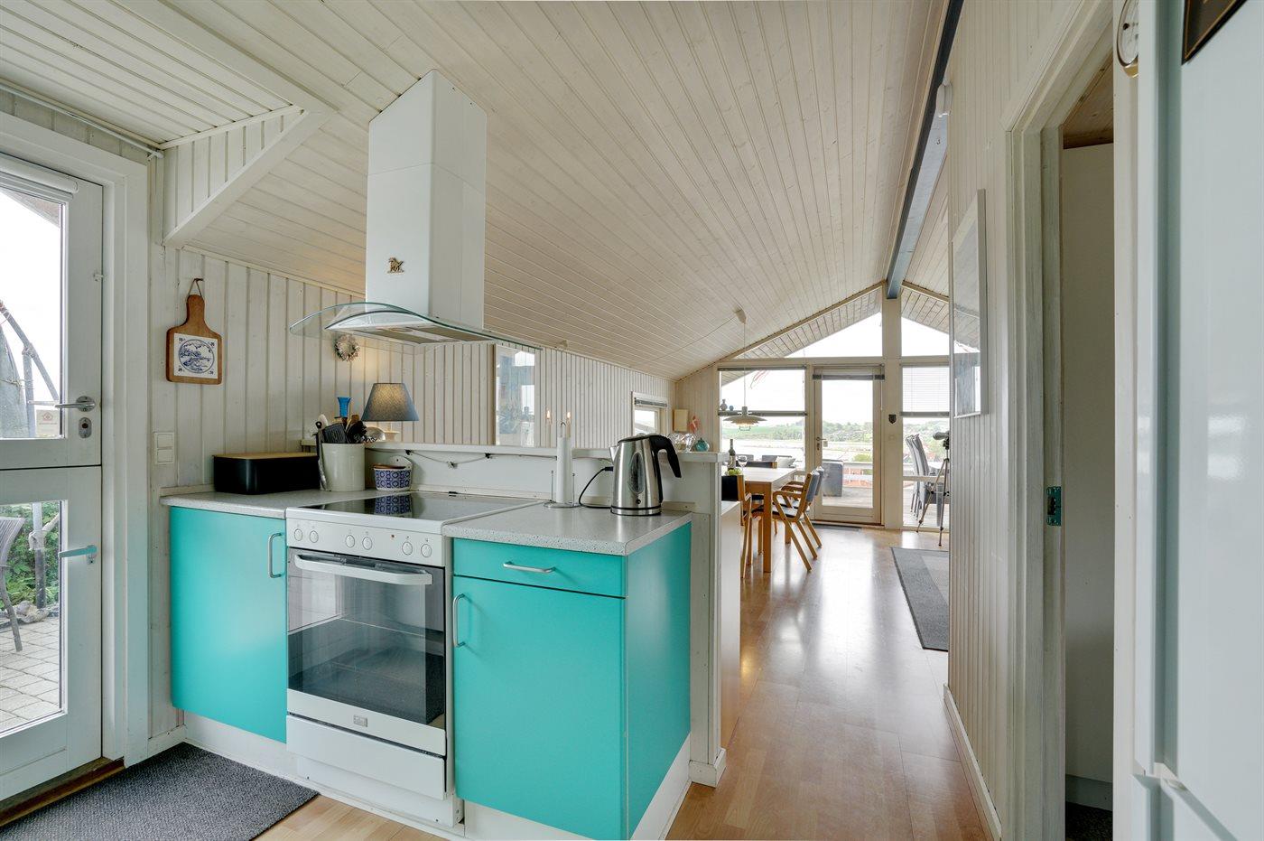 Køkkenet er udstyret med 1 køleskab. Der er 4 induktionskogeplader, varmluftovn, mikrobølgeovn samt opvaskemaskine.