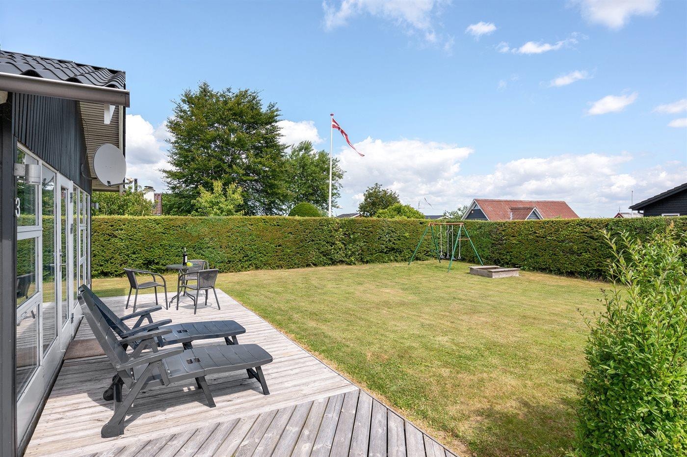 Hyggeligt sommerhus i Hejlsminde med stor grund, tæt på hav og legeplads.