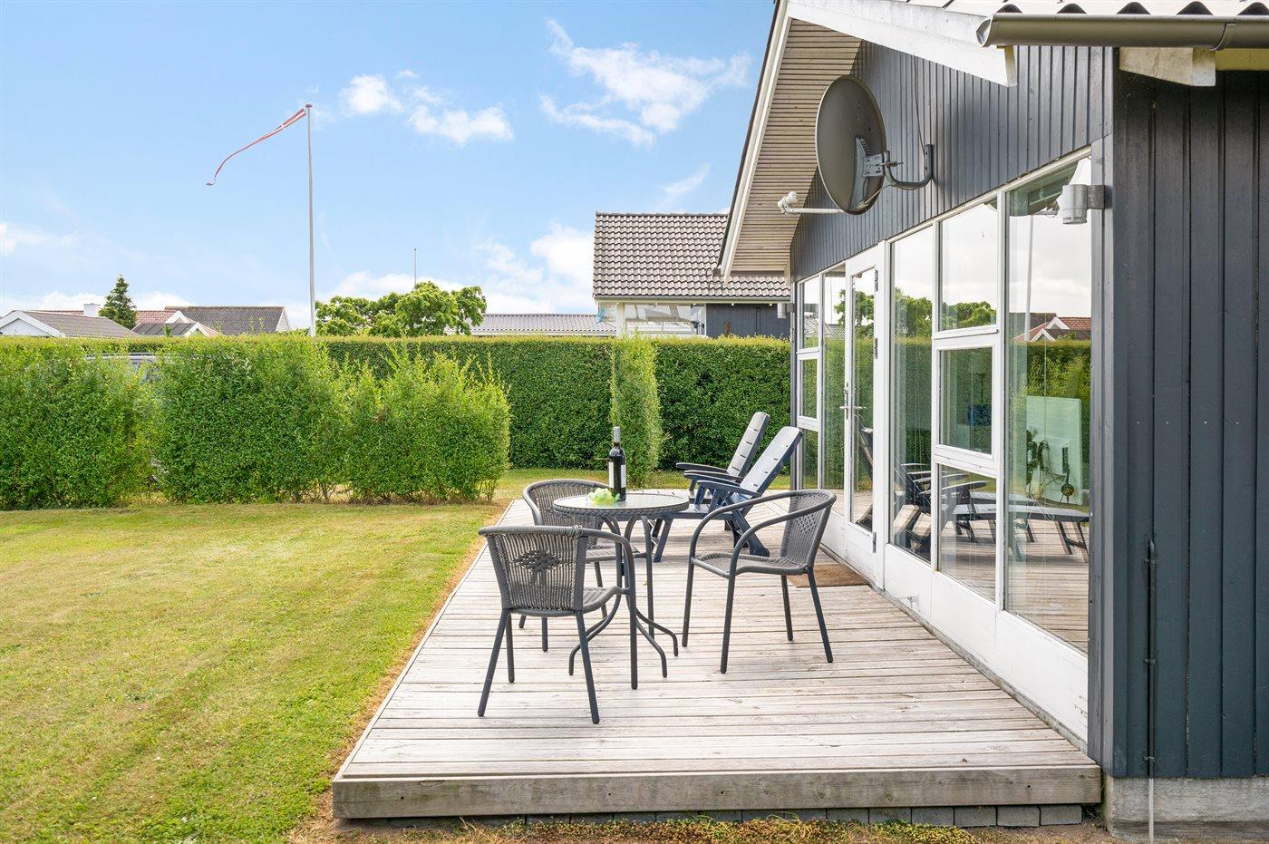 Ferieboligen er beliggende på en 568 m² stor naturgrund. Der er 250 m til havet. Nærmeste forretning er beliggende i en afstand af 300 m. Til ferieboligen hører 41 m² terrasseareal. Der er redskabsrum. Gynge. Sandkasse. Der ligger en legeplads i en afstand af 200 m. Parkering ved ferieboligen.