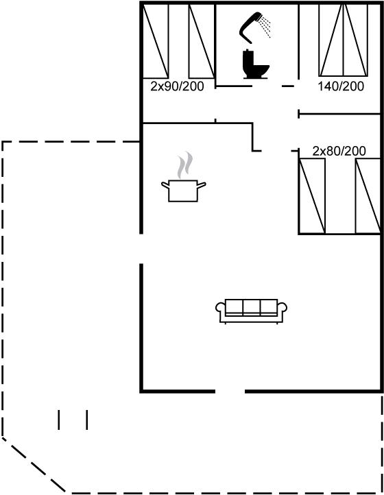 Der er i alt 3 soveværelser. Sovepladserne fordeler sig på: 2 sovepladser i dobbeltseng. 4 sovepladser i enkeltsenge.