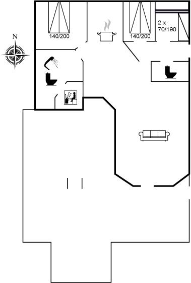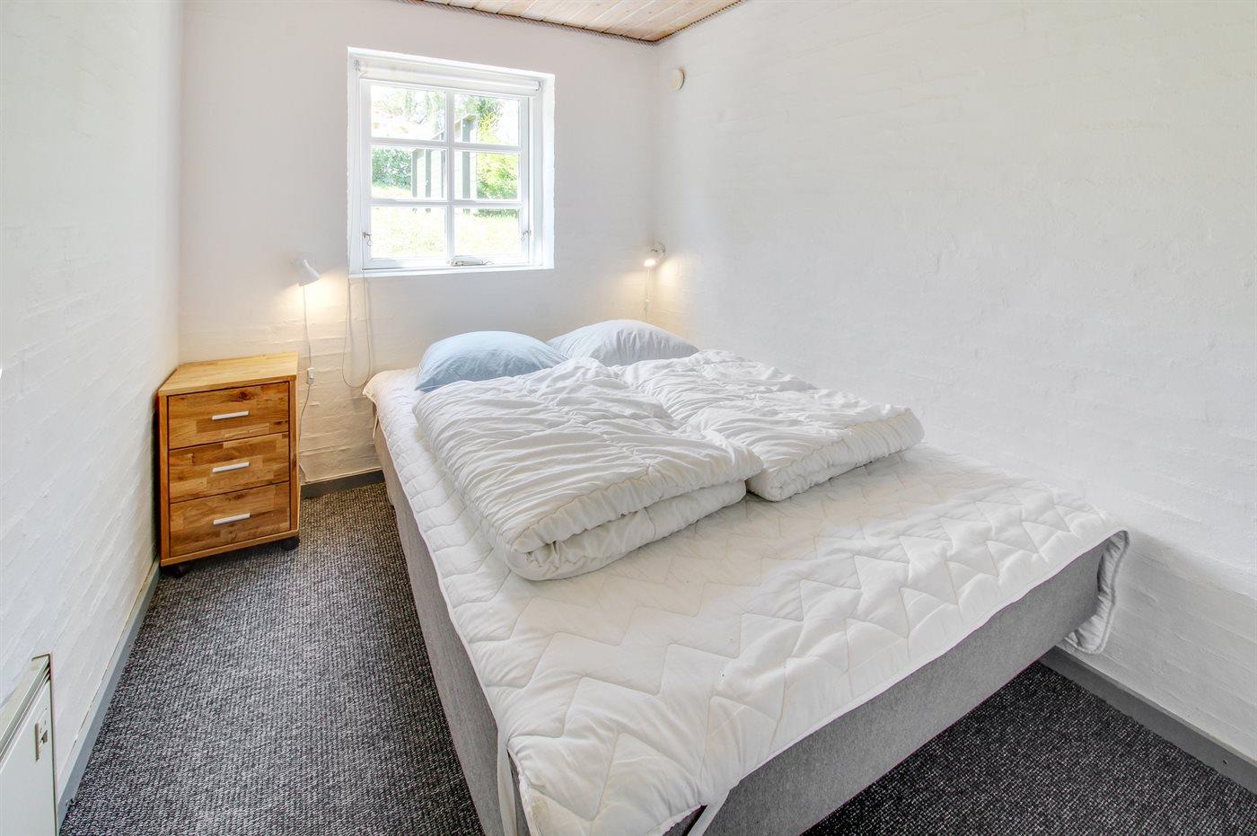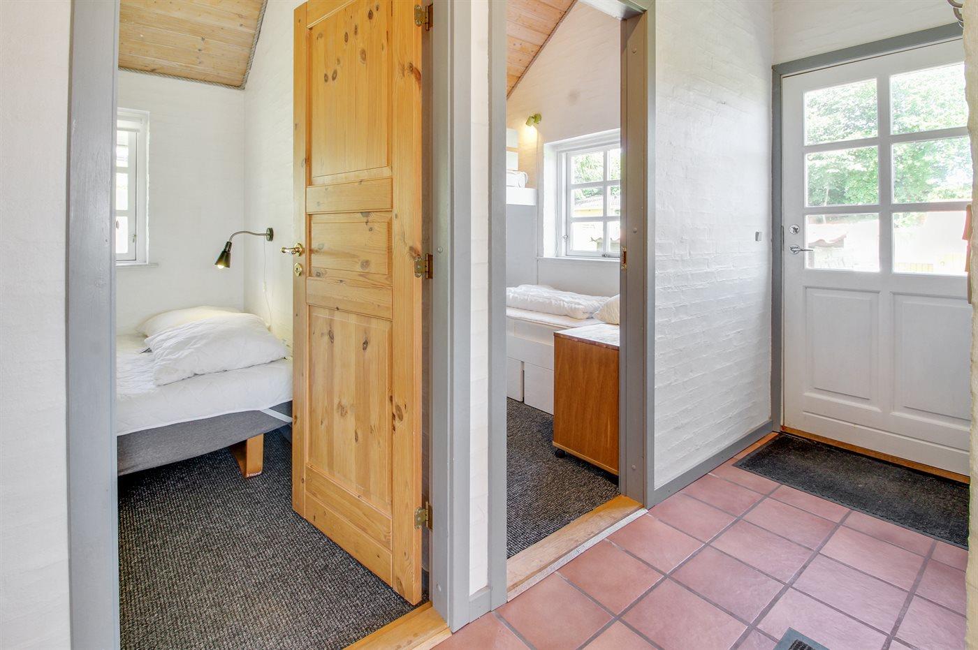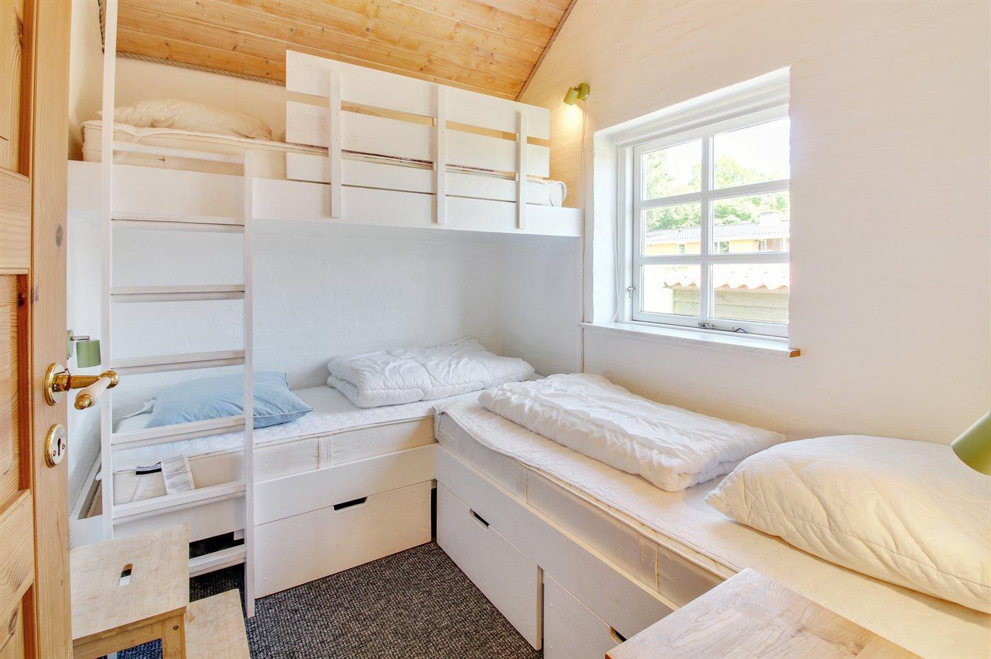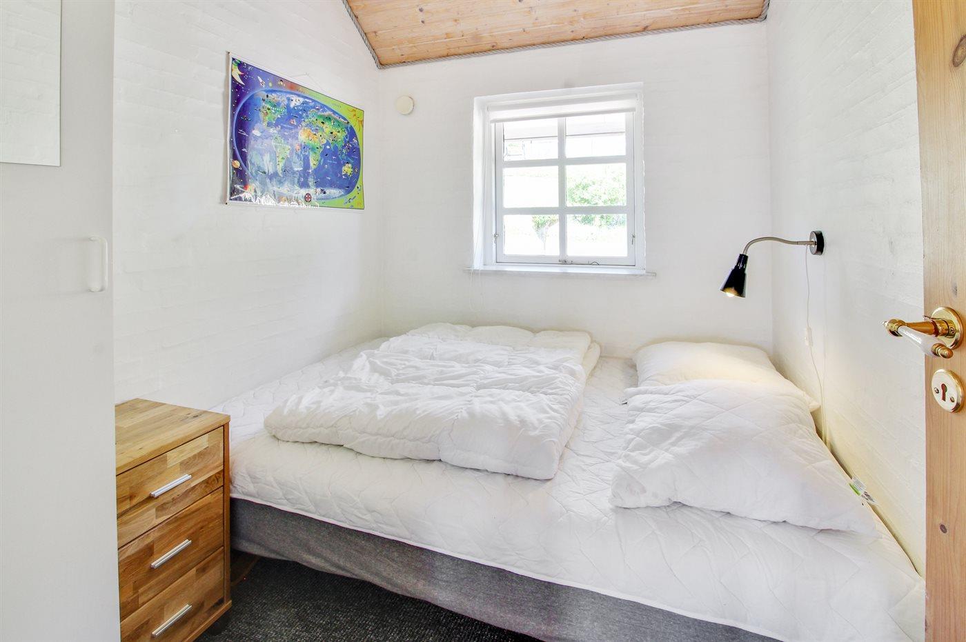 Der er i alt 3 soveværelser. Sovepladserne fordeler sig på: 4 sovepladser i dobbeltsenge. 1 soveplads i enkeltseng. 2 sovepladser i køjeseng. Derudover er der 1 stk. barneseng.