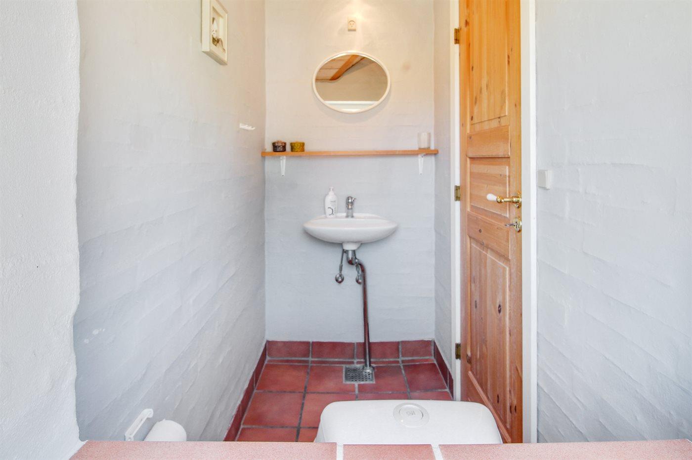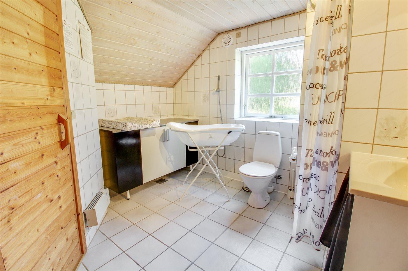 Der er 1 badeværelse med bruseniche og 2 toiletter, heraf 1 gæstetoilet. Der er gulvvarme på 1 badeværelse. I saunaen er der mulighed for afslapning.