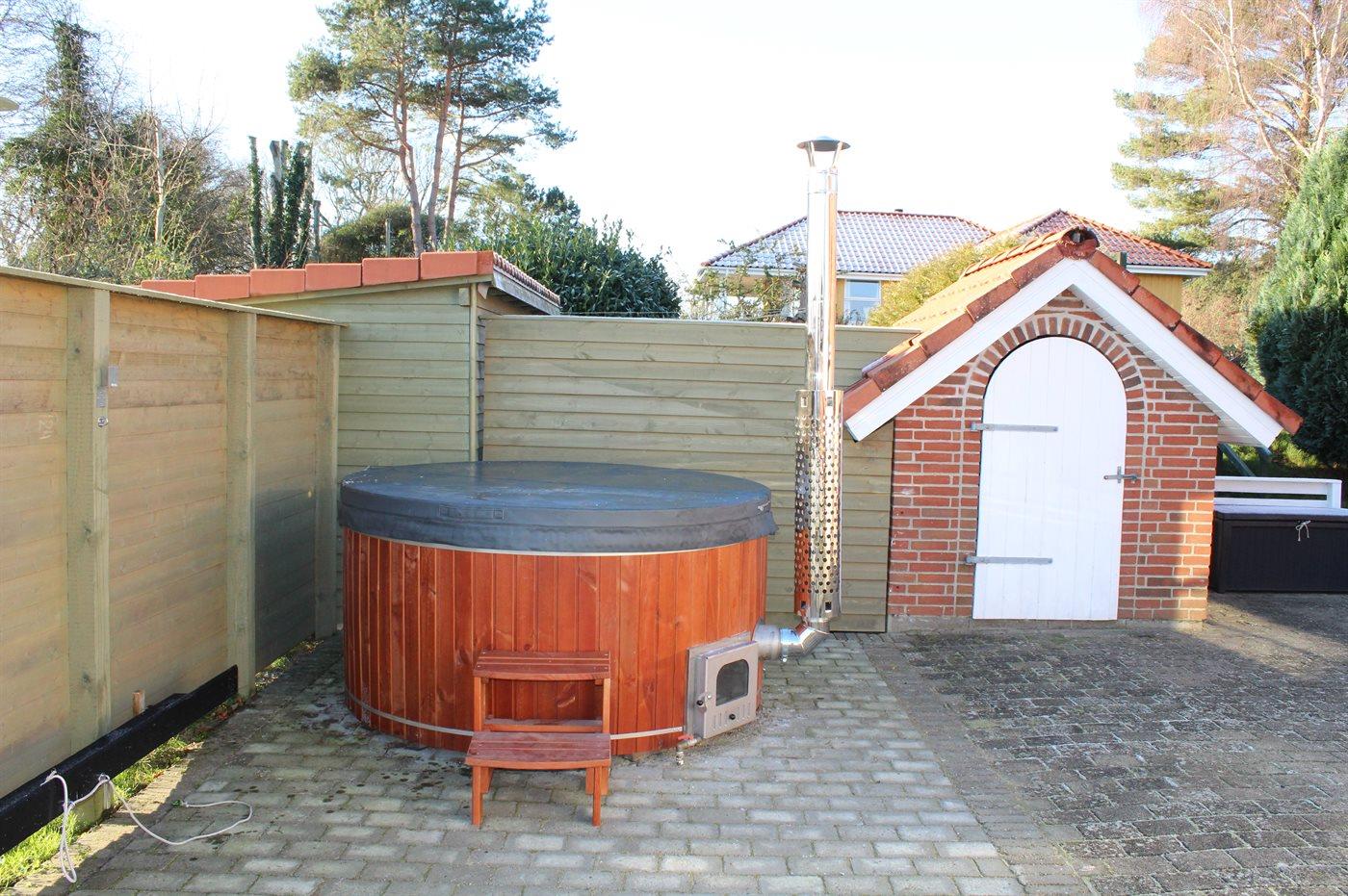 Der er mulighed for afslapning i det udendørs vildmarkskar til 4 personer.