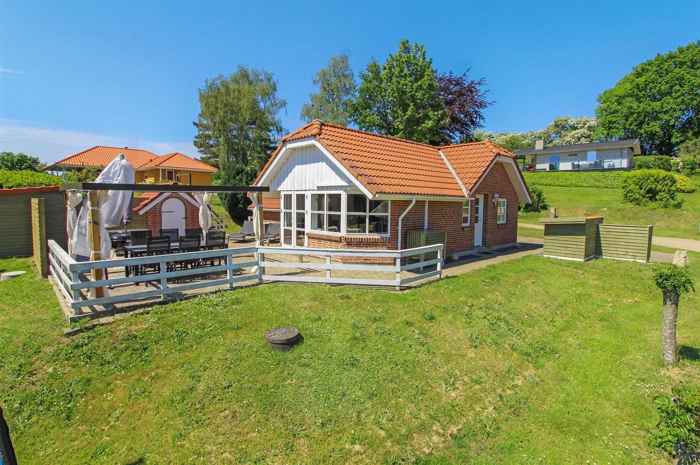 Dejligt, velholdt sommerhus beliggende for enden af blind vej i et naturskønt område nær vandet. Omkring huset findes flere små terrasser og hyggekroge til afslapning, så udelivet kan nydes dagen lang. På terrassen findes der desuden et dejigt 4-pers. vildmarkskar.