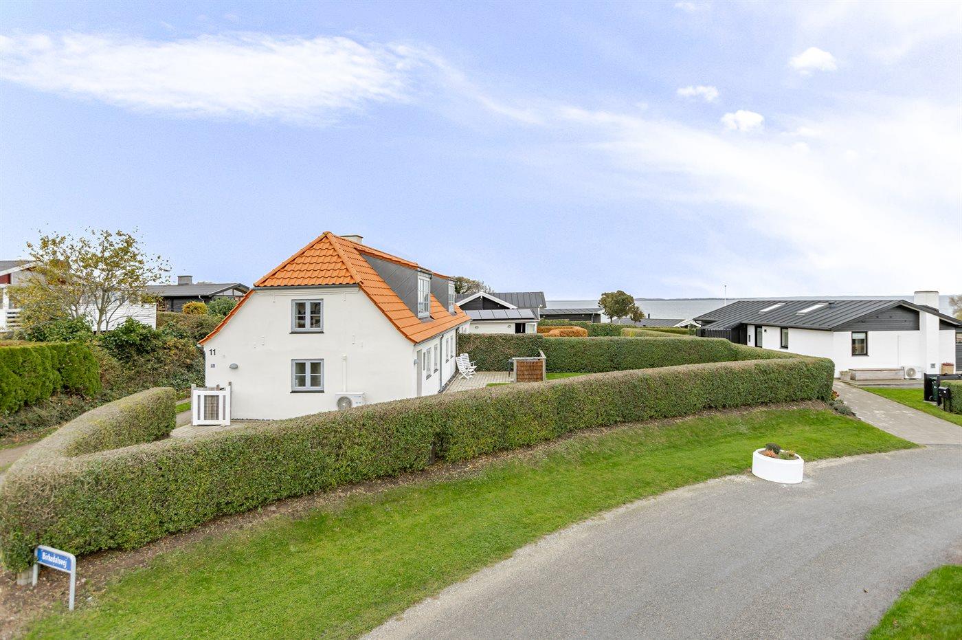 Charmerende feriehus i Hejlsminde med havudsigt, spa og nærhed til børnevenlig strand.