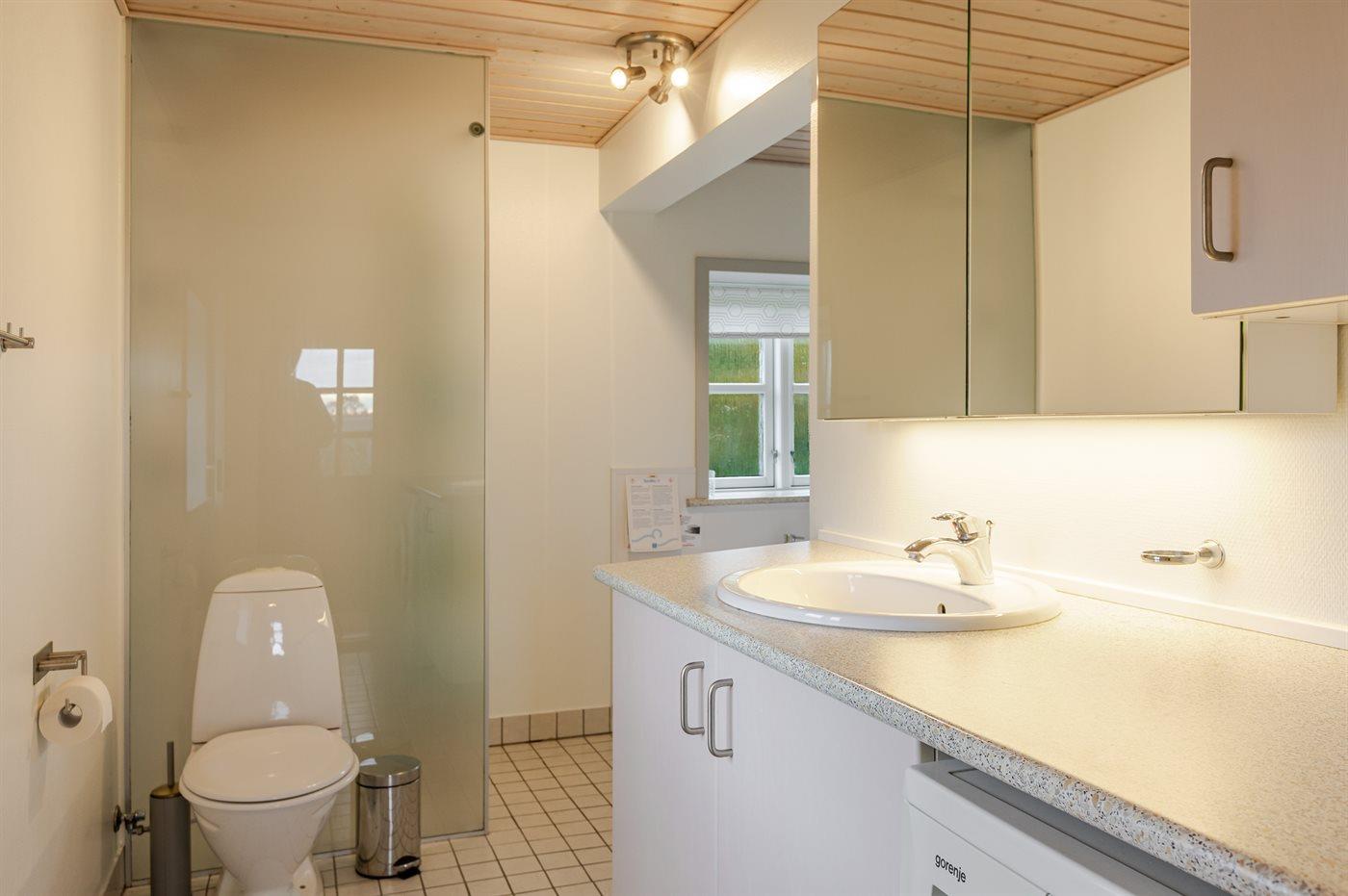 Der er 1 badeværelse med bruser og 1 toilet.. Der er gulvvarme på 1 badeværelse.