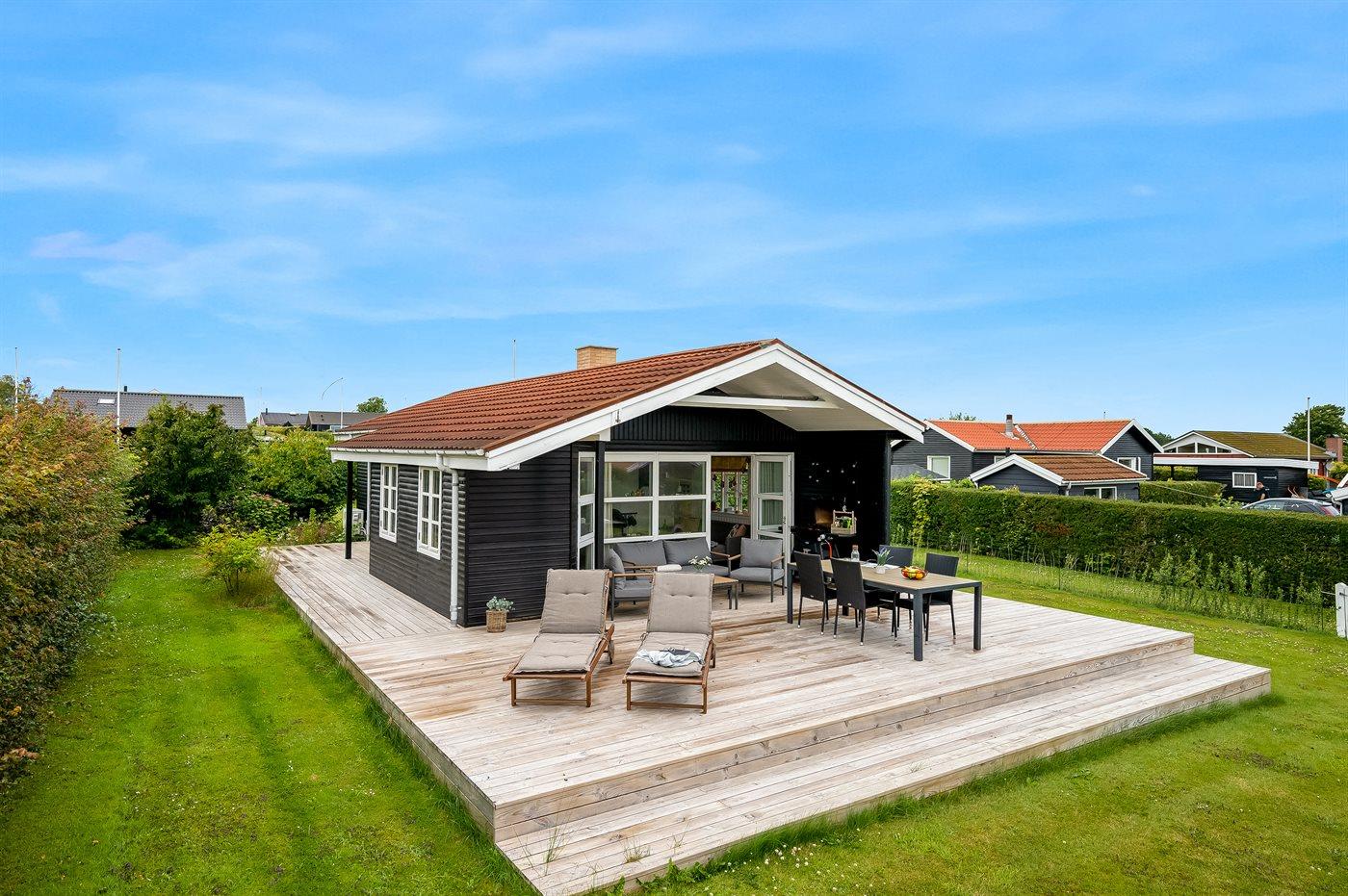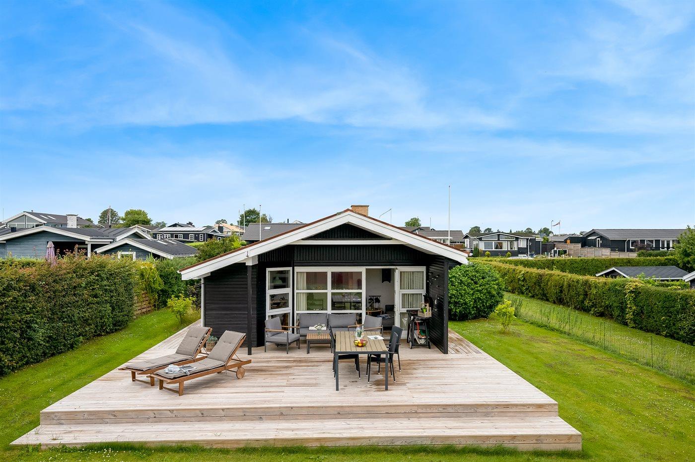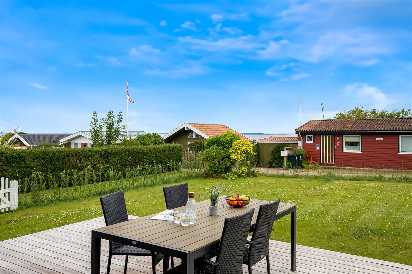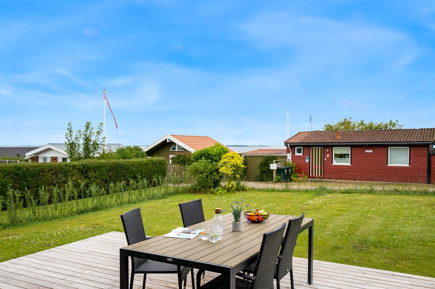 Sommerhus med havudsigt, stor terrasse og kort afstand til børnevenlig strand i Hejlsminde.