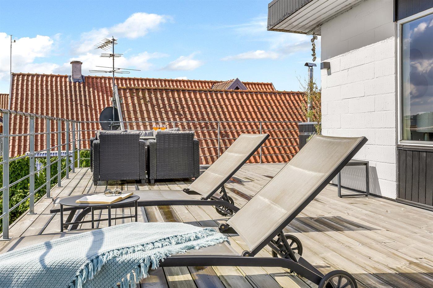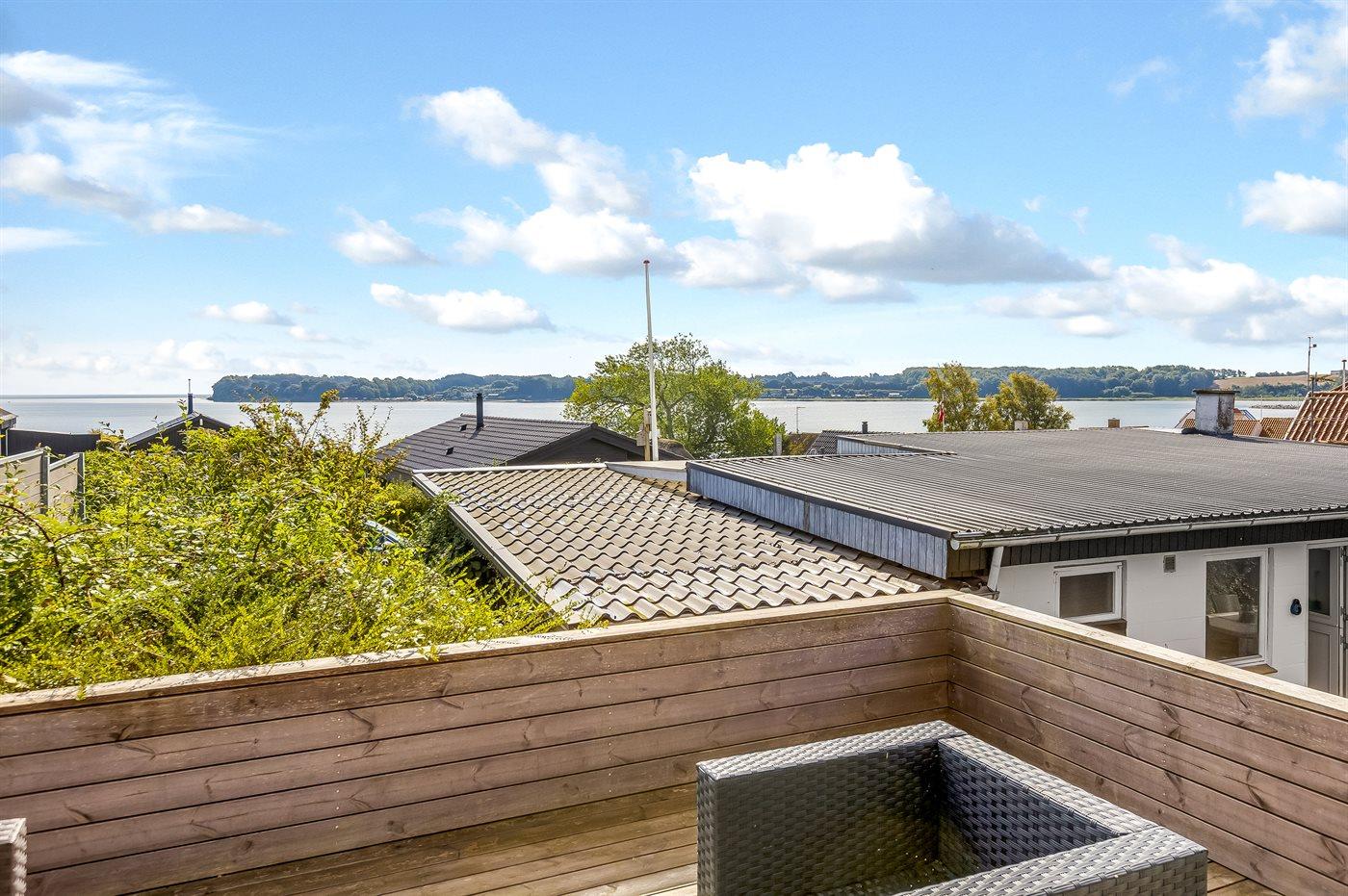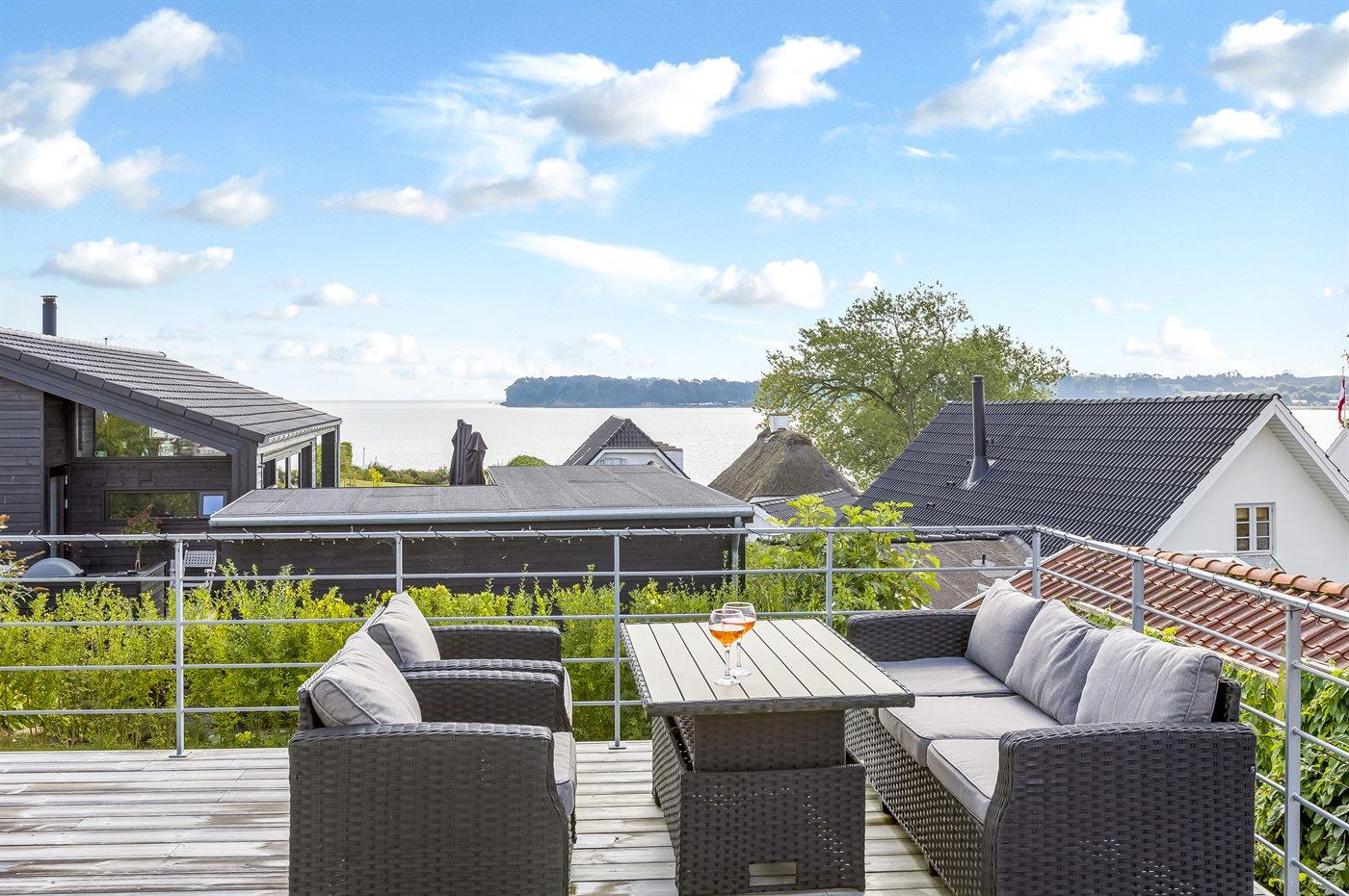 Nyd udelivet på husets terrasser – her er der mulighed for at nyde morgenkaffen, frokosten eller aftensmaden på forskellige steder alt efter solens placering. Den ene terrasse ligger højt på grunden og byder på en enestående udsigt over Lillebælt. Vildmarkskaret er klar til brug – køb brænde direkte hos husejeren, tænd op, vent på at vandet bliver varmt og læn dig tilbage med et glas bobler, mens du nyder roen.
