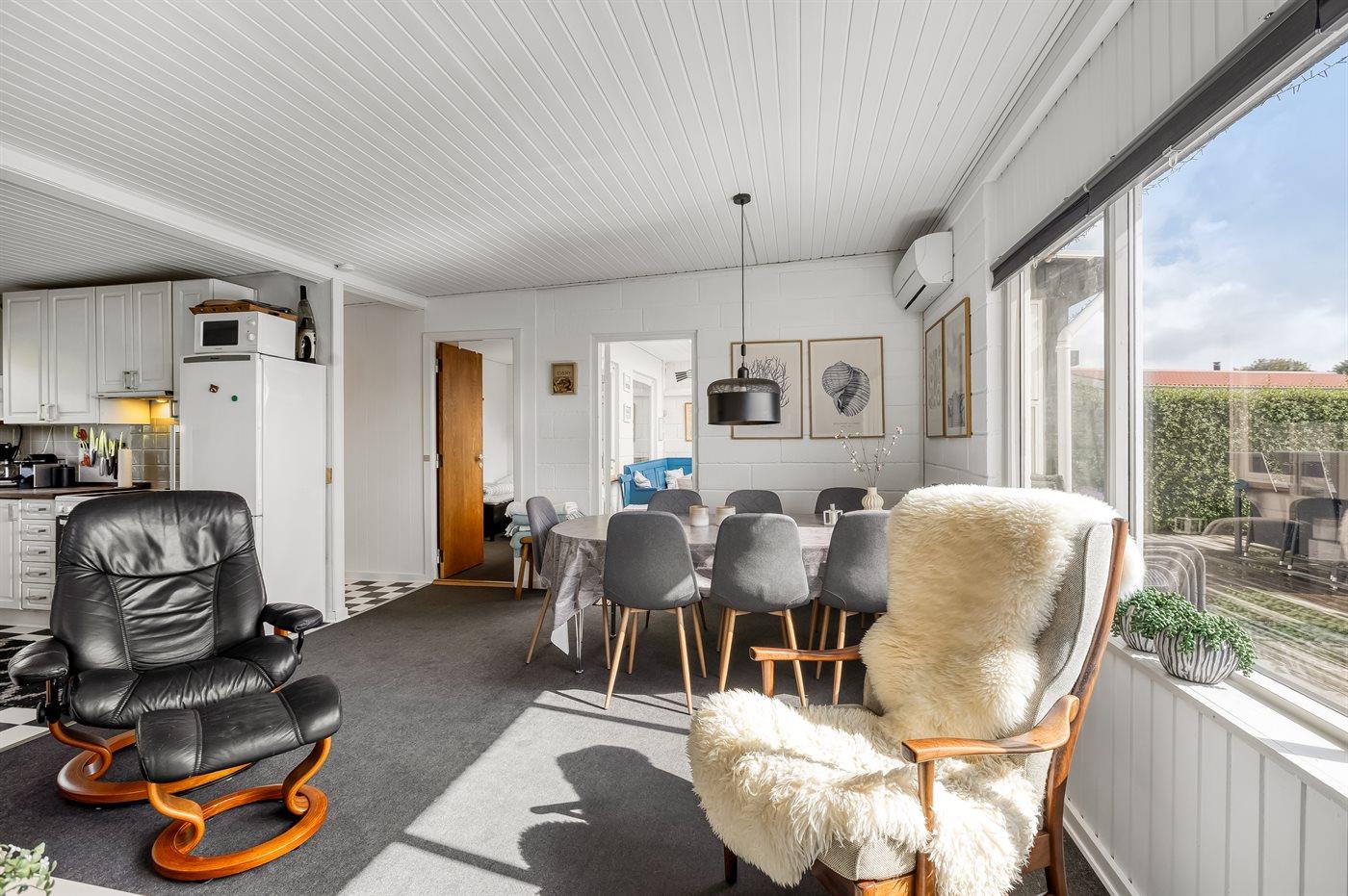 Huset er indrettet med to soveværelser, placeret i hver sin ende af huset, og som en ekstra mulighed findes der et rummeligt anneks med to sovepladser. Sommerhuset blev renoveret i 2018 og fremstår lyst og moderne med nyt køkken og stue fordelt på 61 veludnyttede kvadratmeter samt en hyggelig udestue på 15 kvadratmeter.